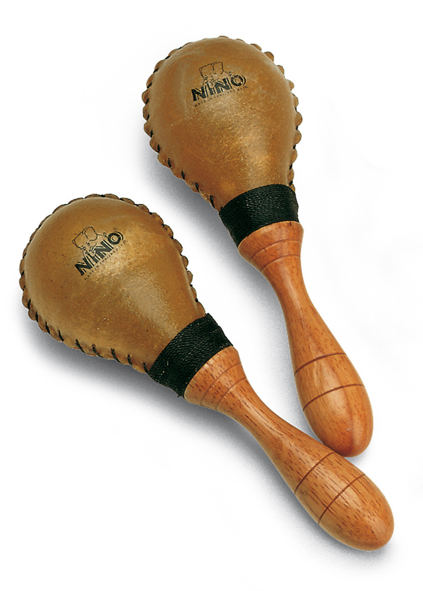 Paire de maracas Skin en cuir brut, manche en bois ergonomique, petit modèle, naturel.