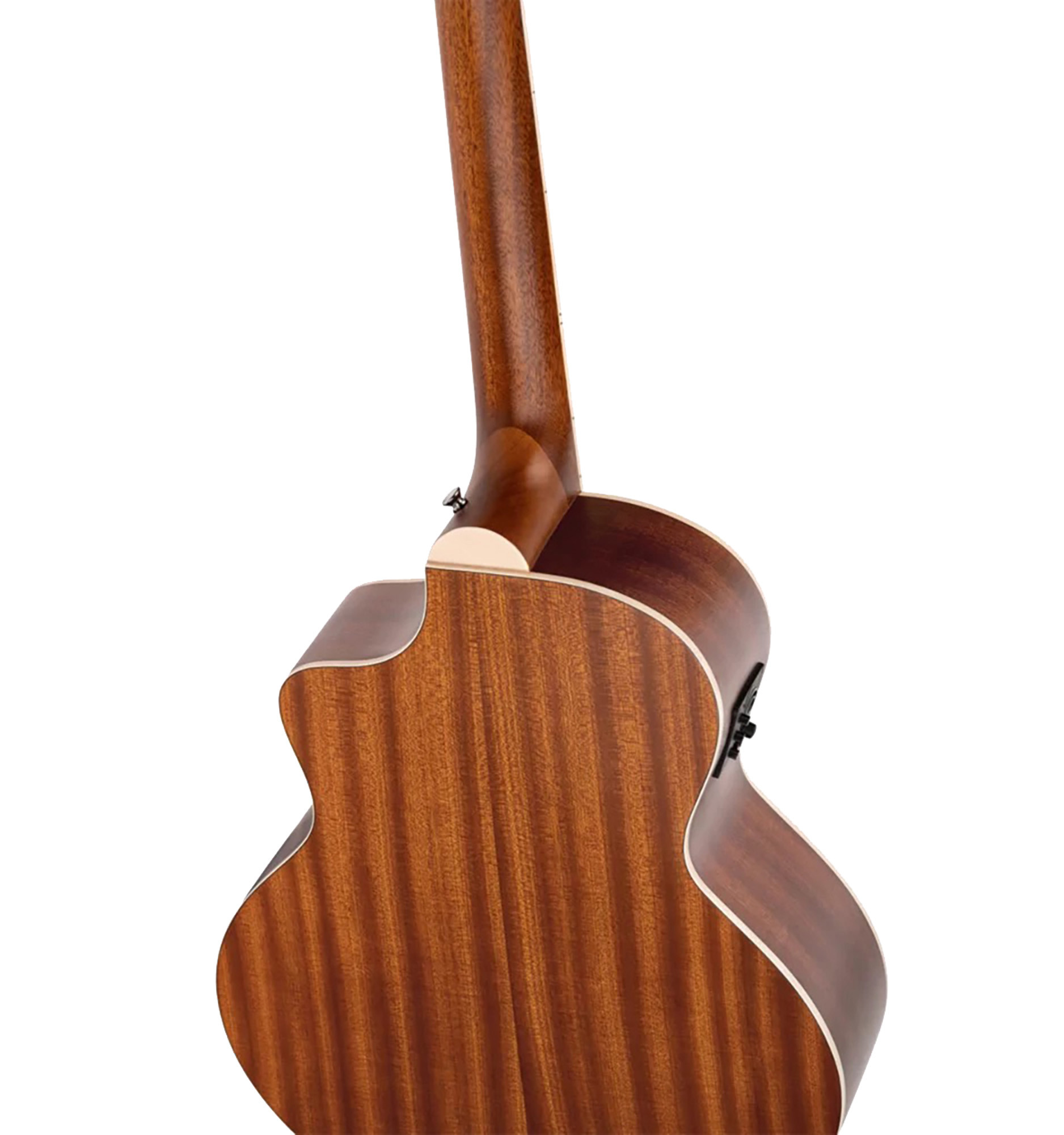 Sa construction associe une table en épicéa, un fond et des éclisses en acajou, ainsi qu’un manche en acajou. Elle dispose aussi d’un truss rod double action, d’une touche en noyer et d’un accastillage chromé, ce qui en fait un instrument bien équipé.