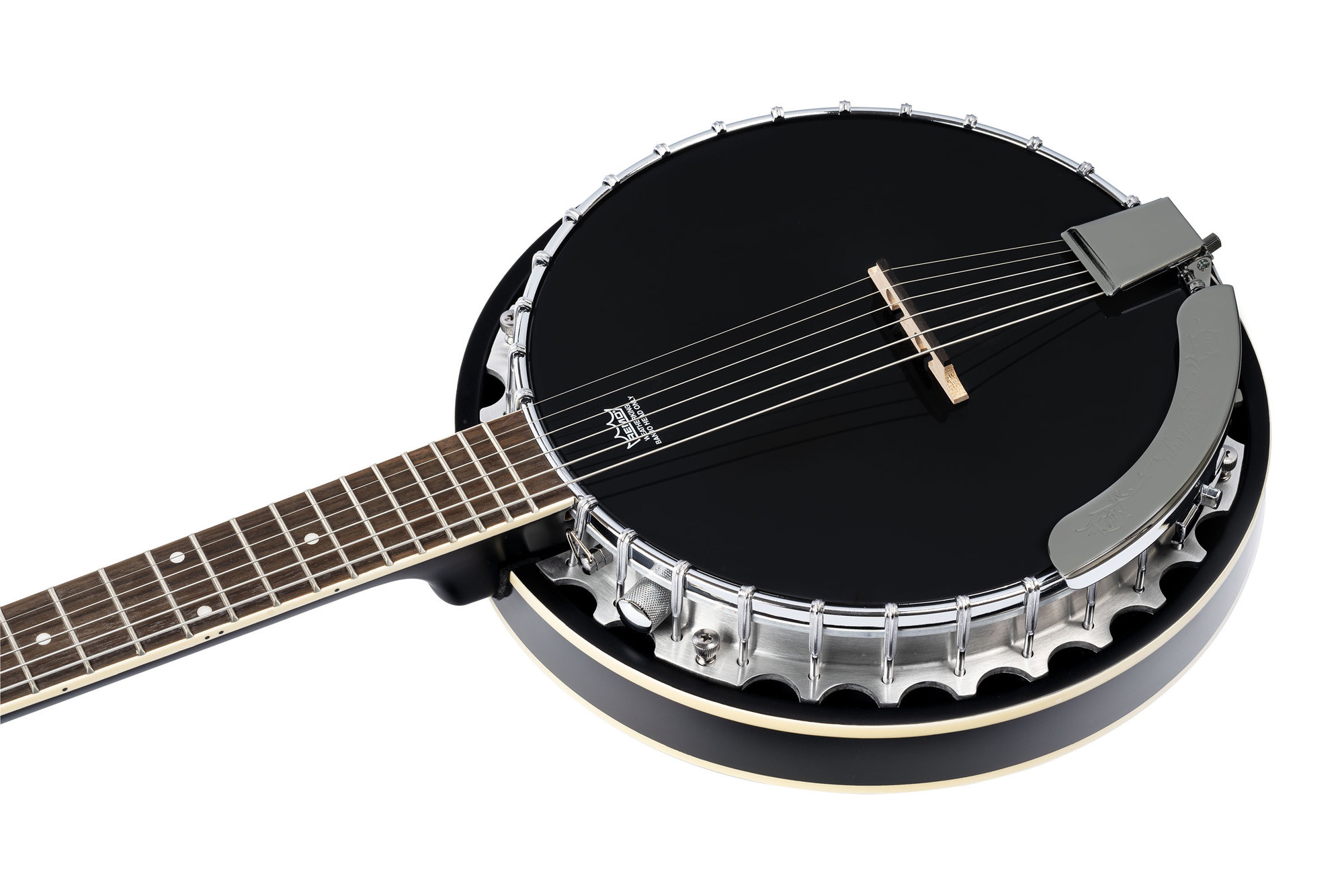 Sa conception combine un cercle en aluminium, un manche et un résonateur en acajou, une touche en ovangkol, une peau Remo noire, des mécaniques à bain d'huile et des cordes D'Addario, ce qui en fait un modèle bien équipé.