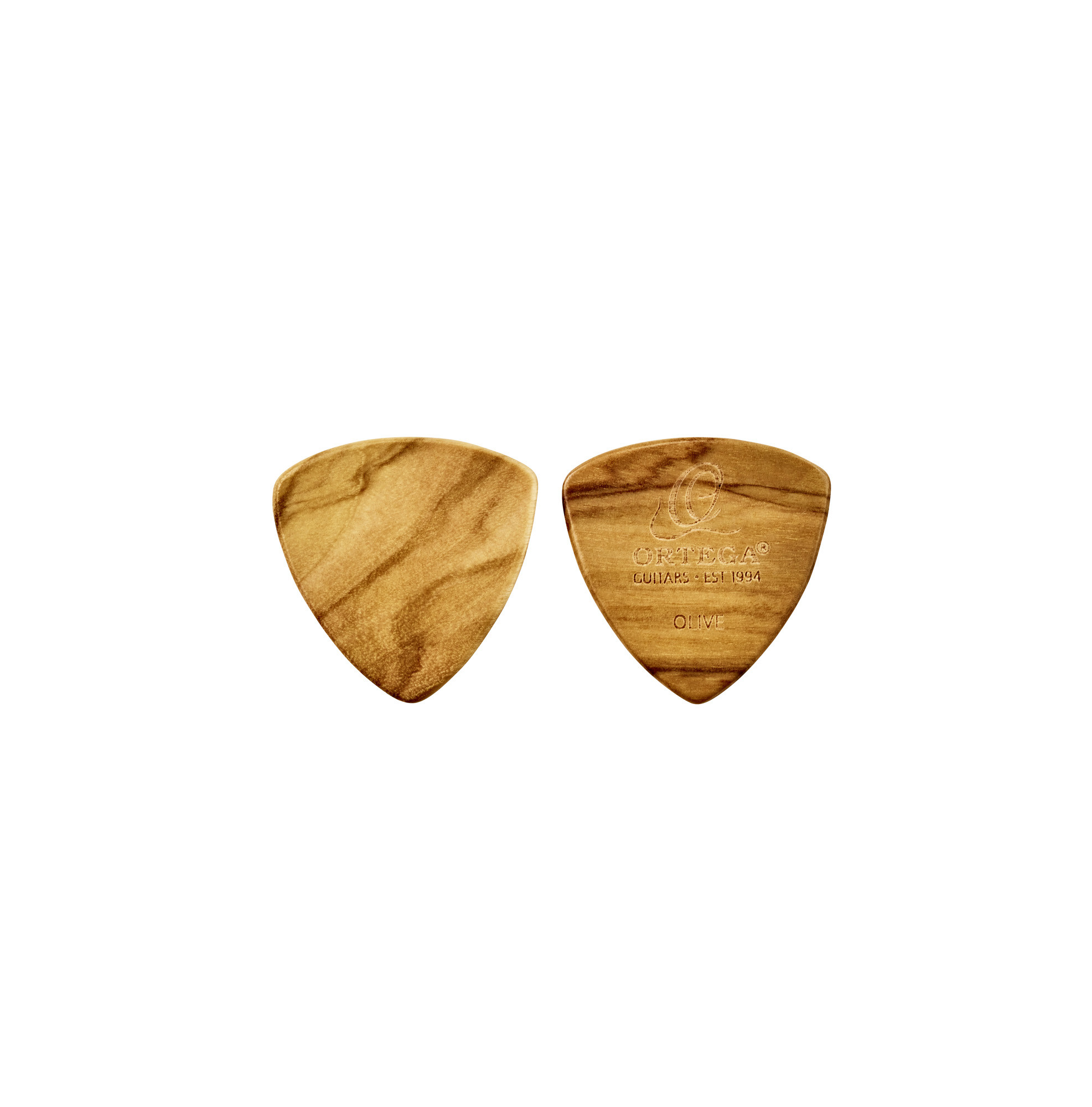 Set de 2 médiators en bois d'olivier, format triangle XL, avec une épaisseur de 2,0 mm.
