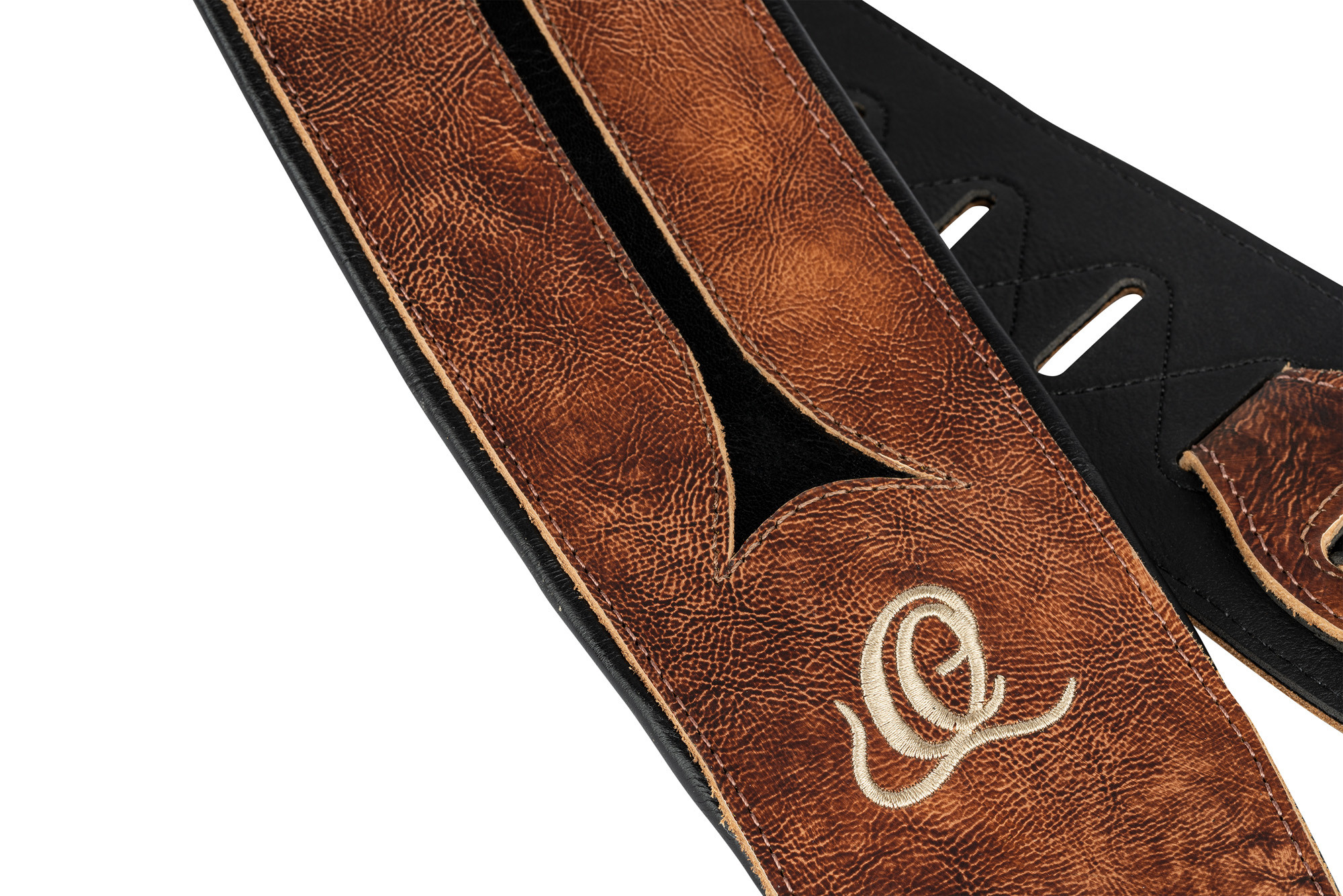 OSBS-1, courroie basse, cuir véritable, 3 couches et incrustation, largeur 9 cm, longueur 105 à 160 cm, chestnut tree.
