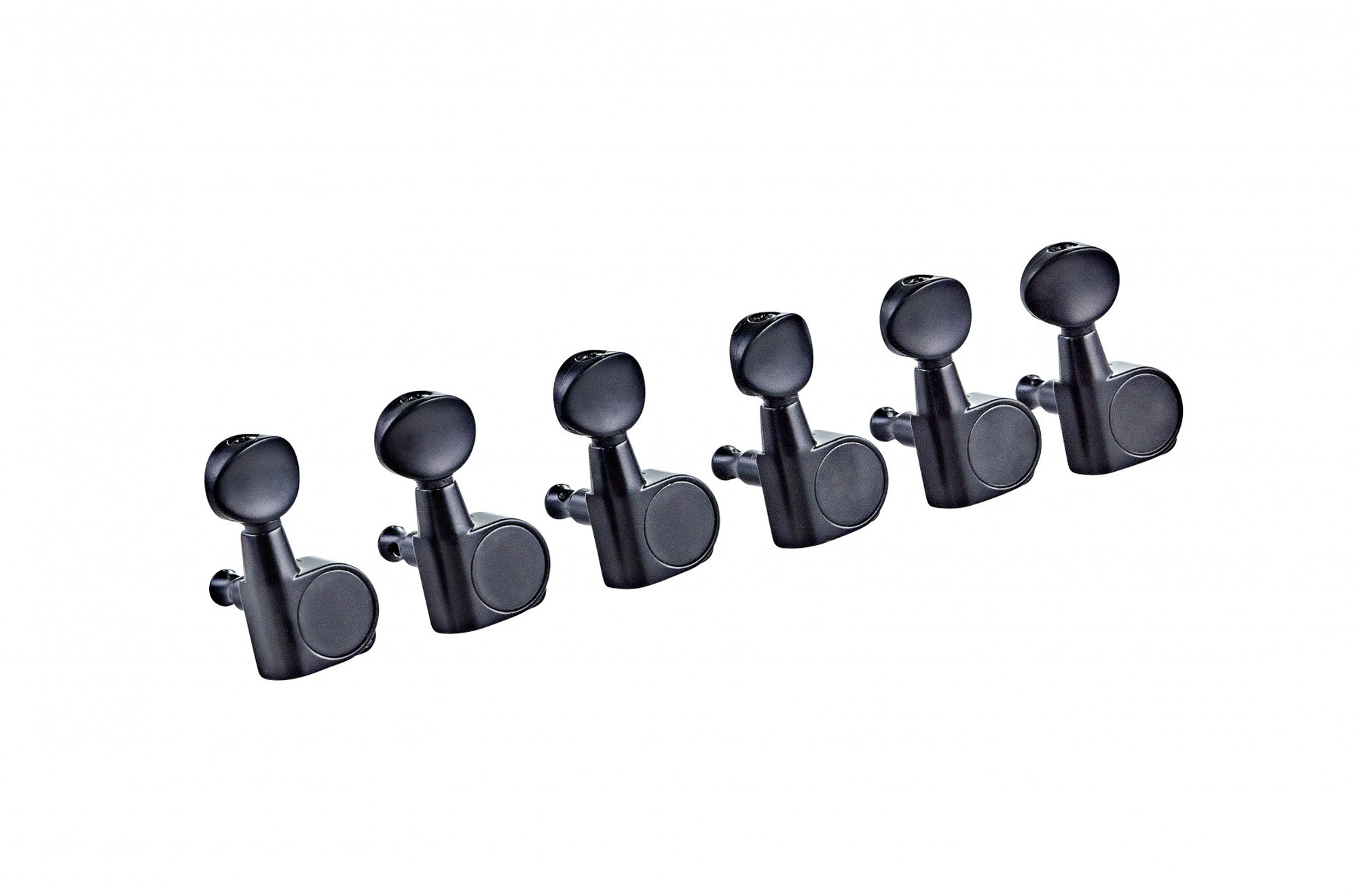 Jeu de 6 mécaniques en ligne séparées à bain d'huile pour guitare électrique, ratio 14:1, noir brillant, boutons noirs.