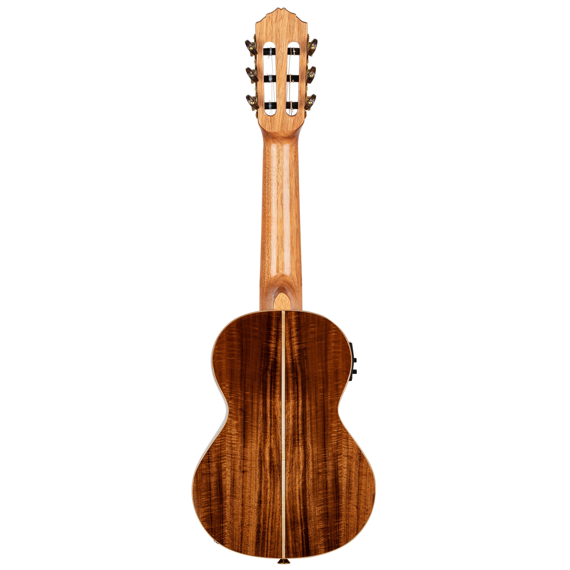 Ce modèle combine une construction soignée et des composants fiables pour offrir un instrument agréable à jouer au quotidien. Il est équipé de l’électronique Ortega MagusUke avec accordeur intégré, d’une table en acacia massif, d’un fond et d’éclisses en acacia, ainsi que d’un manche en acajou avec un sillet de 47 mm.