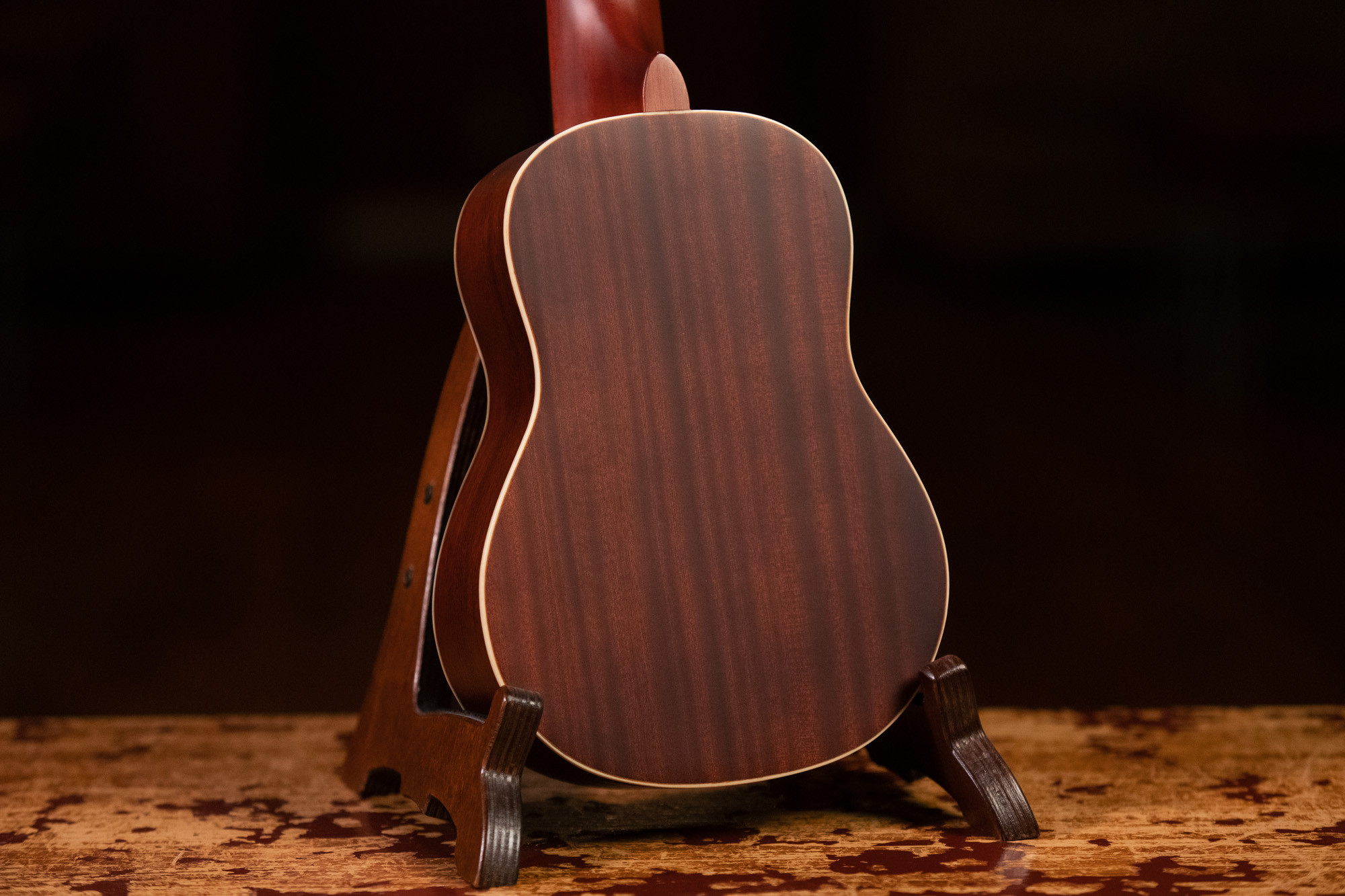 Il se distingue par sa construction en acajou massif sur la table, le fond et les éclisses, son manche en acajou, sa touche et son chevalet en sonokeling, ainsi que ses mécaniques dorées et ses cordes Aquila.