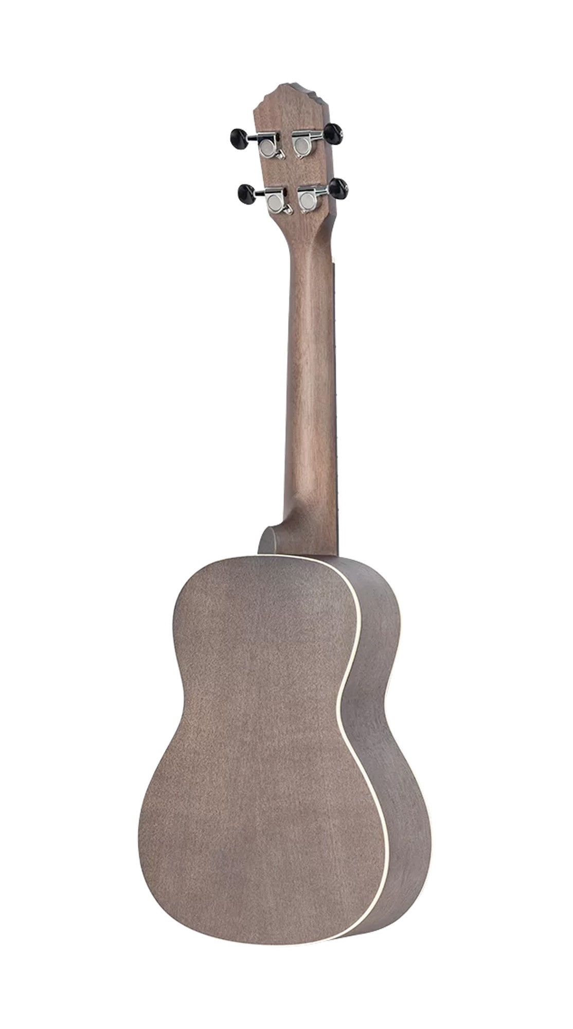 Ce modèle concert se distingue par sa conception pensée pour les gauchers et par sa finition noir satiné élégante. Il associe une table en okoume, un fond et des éclisses en okoume, ainsi qu’un manche en acajou pour offrir une construction soignée et homogène. Son sillet de 36 mm, ses 18 frettes, sa touche et son chevalet en sonokelin, ainsi que ses mécaniques chromées à bain d’huile complètent un instrument précis et agréable à utiliser. Il est monté avec des cordes Aquila.