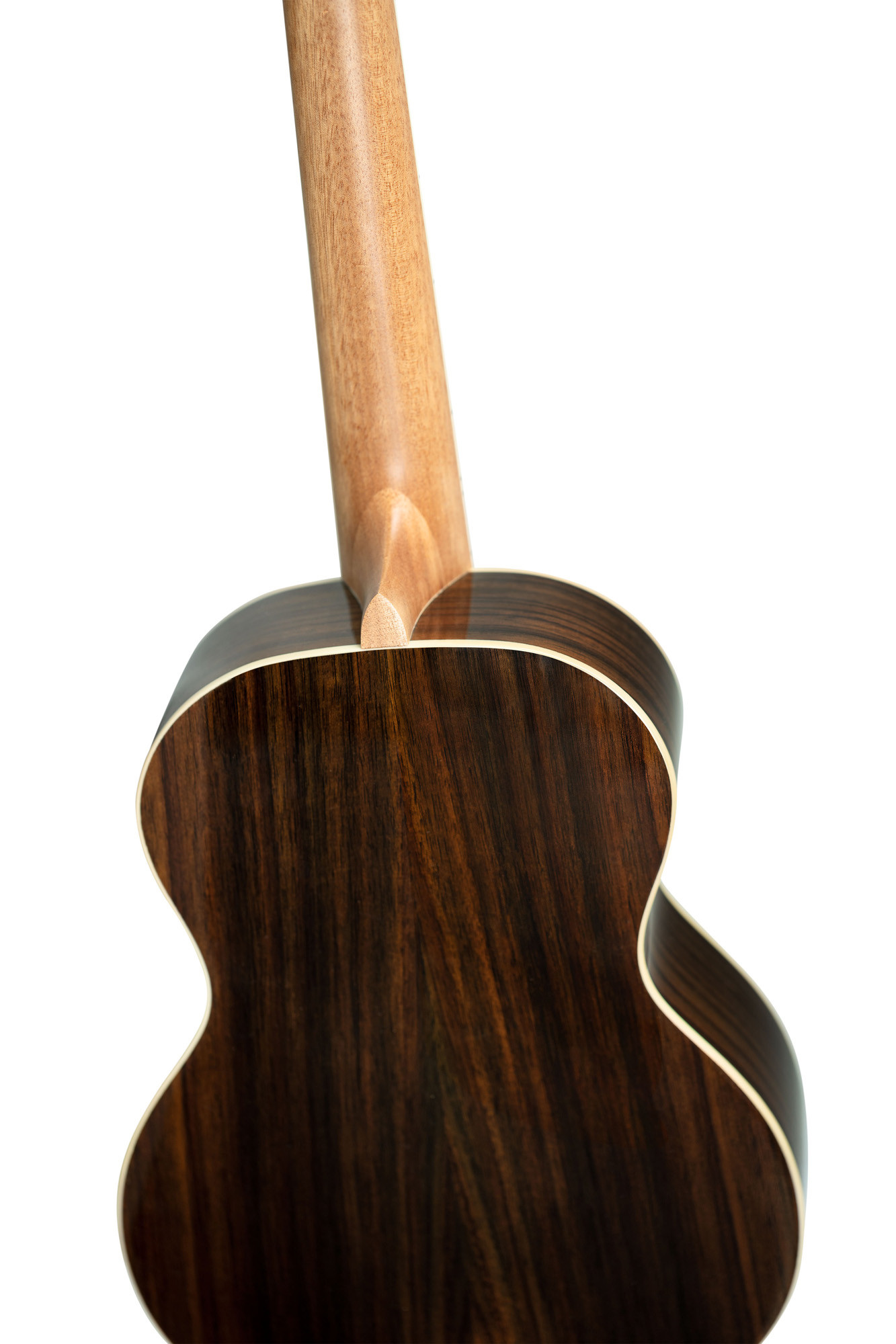Le RUGH-PLT est un modèle ténor conçu avec une table en épicéa massif, un fond et des éclisses en palissandre ainsi qu’un manche en acajou. Sa finition platinium brillant lui apporte un aspect soigné et distinctif.