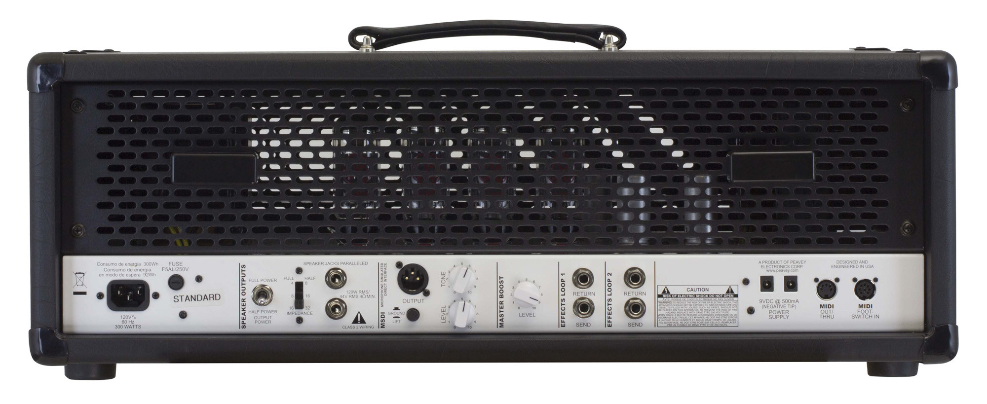 Conçue pour offrir un son puissant et polyvalent, cette tête délivre 120W RMS grâce à quatre lampes 6L6GC, avec un préampli tout lampes équipé de six 12AX7. Ses trois canaux distincts — Clean, Crunch et Lead — permettent d’aborder différents styles de jeu avec précision. L’égalisation 3 bandes facilite l’ajustement du son, tandis que le contrôle de Gate sur les canaux Crunch et Lead et le Boost supplémentaire sur les trois canaux apportent davantage de flexibilité. L’impédance sélectionnable 16/8/4 Ohms permet une intégration adaptée à différentes configurations.