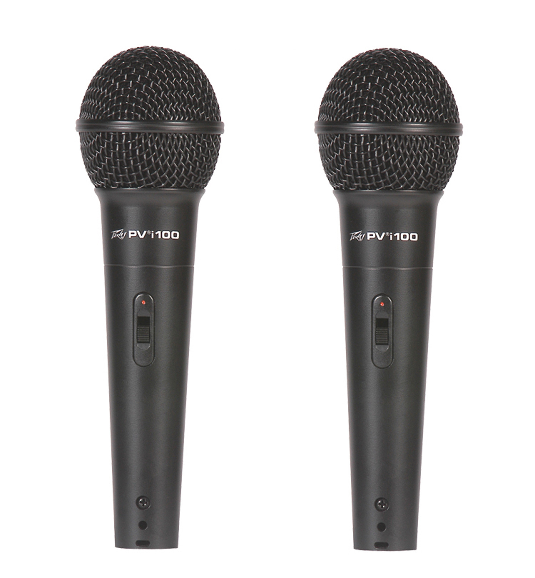Pack de 2 microphones dynamiques cardioïdes Peavey PVi 100, avec interrupteur on/off et corps en zinc robuste, finition noire. Conçu pour offrir une prise en main fiable, ce lot convient aussi bien à la voix qu’aux instruments.