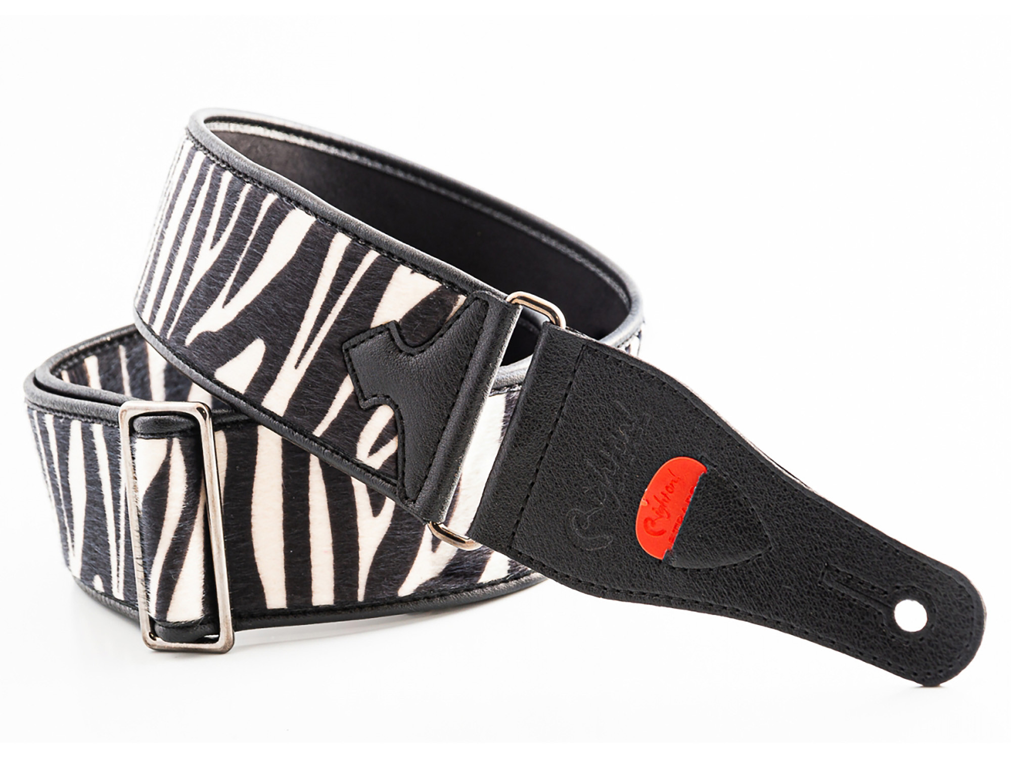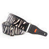 Courroie modèle ZEBRA, synthétique, rembourrée, largeur 6 cm, longueur 95 à 150 cm, porte-médiators intégré, zèbre.