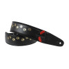 Courroie modèle CAT, extérieur synthétique, largeur 6 cm, longueur 100 à 145 cm, porte-médiators intégré, noir et doré.