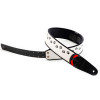 Avec son extérieur synthétique et sa doublure en microfibres, cette courroie offre une conception soignée et confortable. Sa largeur de 6 cm et sa longueur réglable de 100 à 145 cm permettent un ajustement adapté, tandis que le porte-médiators intégré ajoute une fonctionnalité pratique. Sa finition blanche lui donne un style sobre et net.