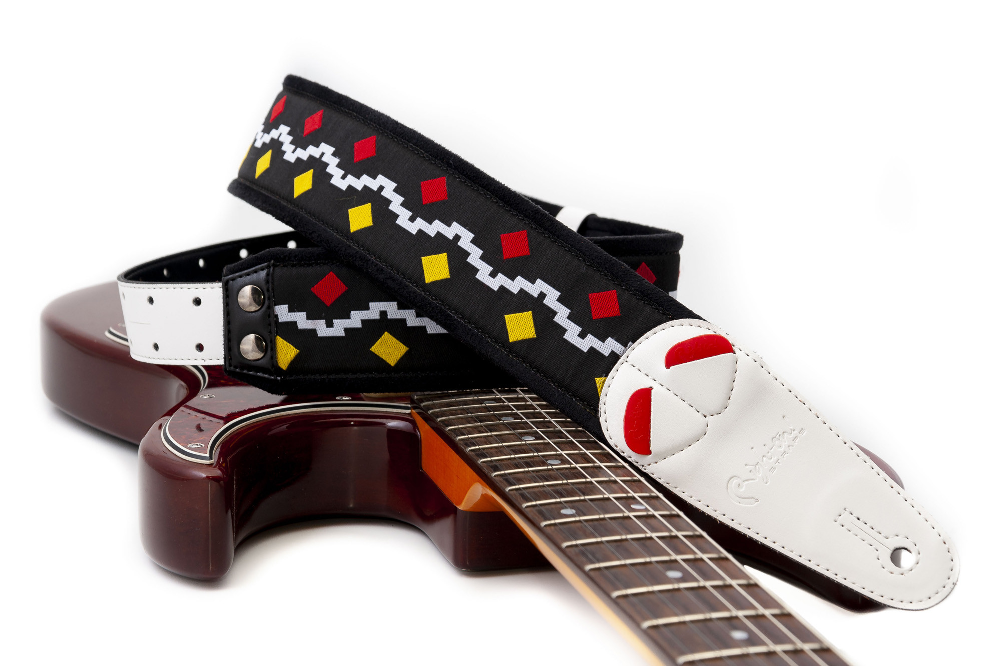 Courroie modèle GET BACK FRANCE avec extérieur en synthétique et tissu, pensée pour offrir un maintien confortable et pratique. Sa largeur de 6 cm et sa longueur réglable de 100 à 145 cm permettent une adaptation facile selon les besoins. Elle intègre un porte-médiators pour garder l’essentiel à portée de main. Son design noir et blanc lui donne un style sobre et polyvalent.