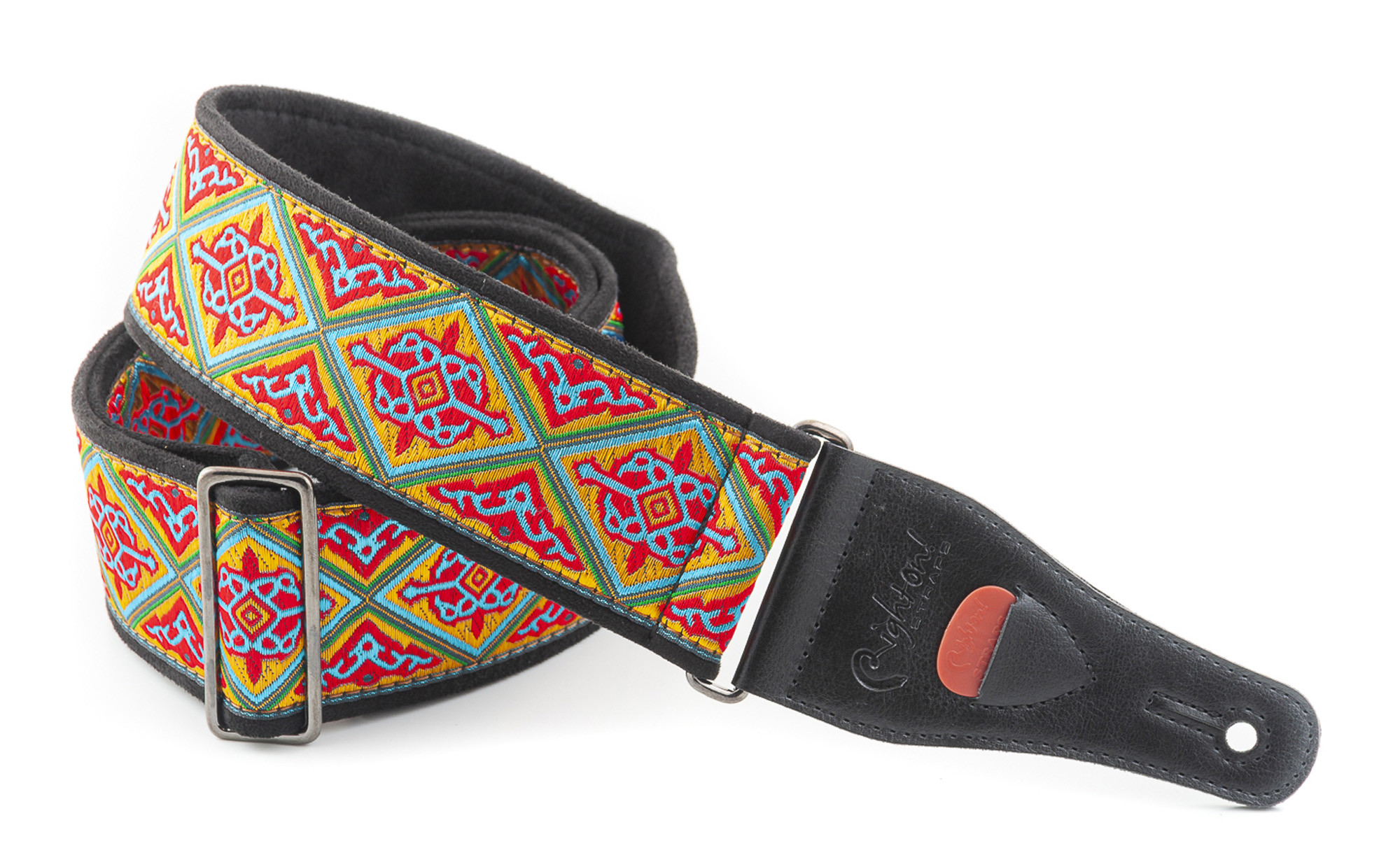 Cette courroie modèle HAFA en tissu Jacquard allie confort et praticité pour accompagner vos déplacements avec votre instrument. Sa largeur de 6 cm et sa longueur réglable de 90 à 150 cm permettent un port adapté à différentes morphologies et positions de jeu. Elle intègre également un porte-médiators pour garder vos accessoires à portée de main. Sa conception comprend une doublure en microfibres, des extrémités 100 % synthétique et un rembourrage haute densité, avec une finition rouge.