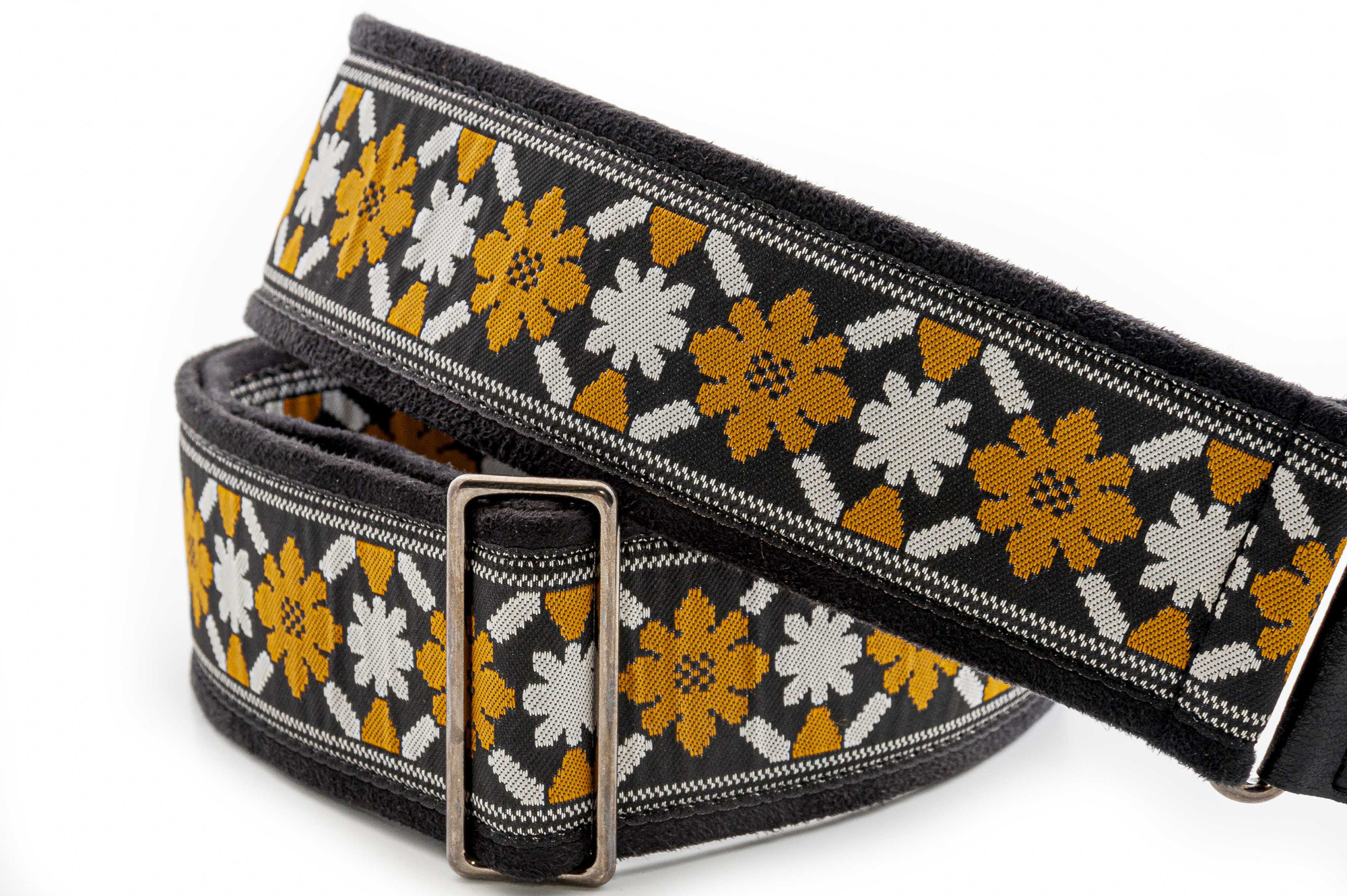 Cette courroie associe un tissu Jacquard à une doublure microfibres, avec des extrémités 100% synthétique et un rembourrage haute densité. Sa largeur de 6 cm et sa longueur réglable de 85 à 150 cm permettent un port adapté selon les besoins, tandis que le porte-médiators intégré ajoute un aspect pratique au quotidien.