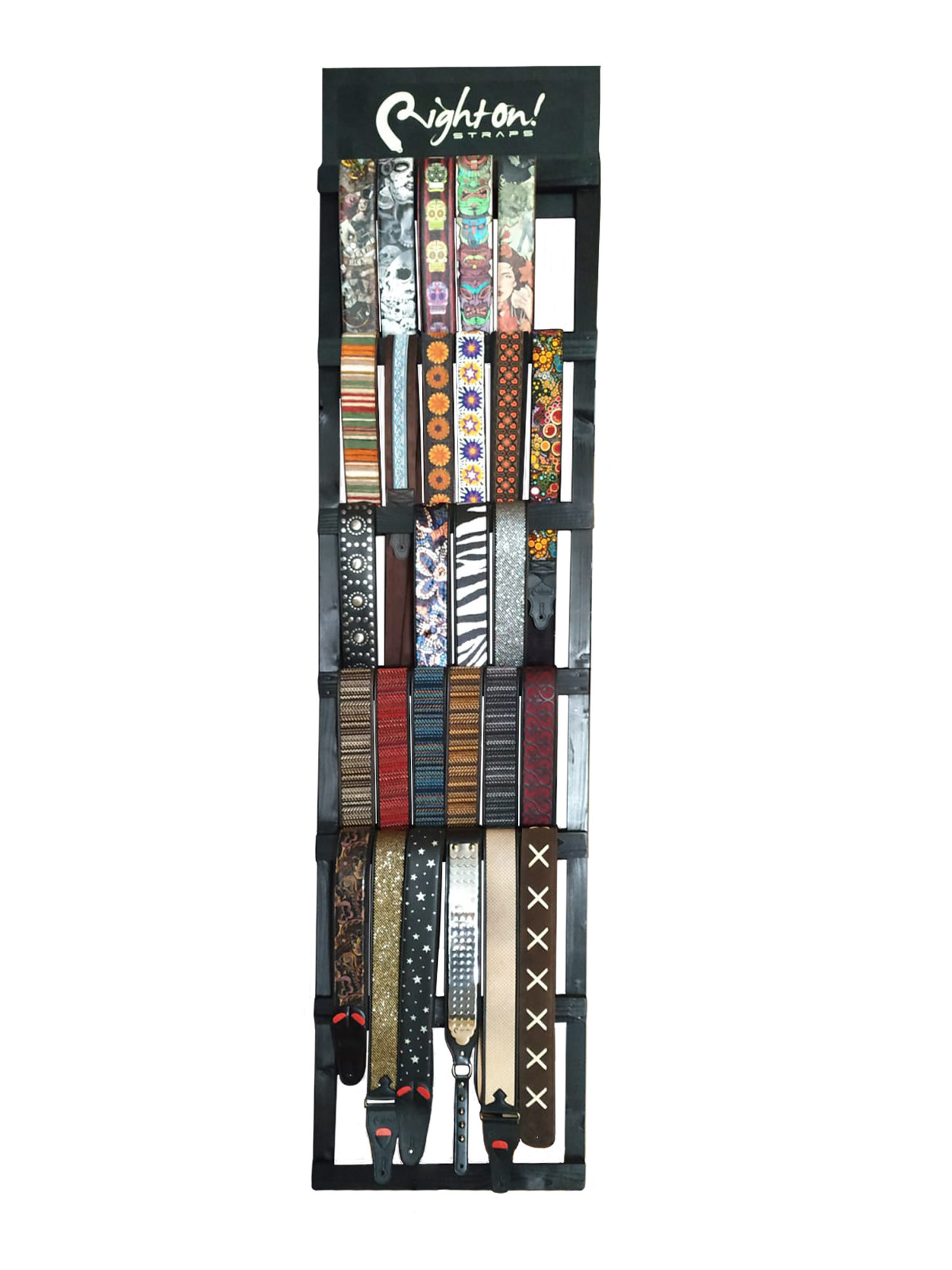 Présentoir RightOn! Straps, modèle échelle bois noir pour 36 courroies (6 étages de 6 courroies), dimensions 187 x 46 cm.