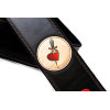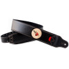 Courroie modèle TATOO HEART, conçue avec un extérieur synthétique, une largeur de 7 cm et une longueur réglable de 98 à 153 cm. Elle intègre également un porte-médiators pratique et se décline en noir.