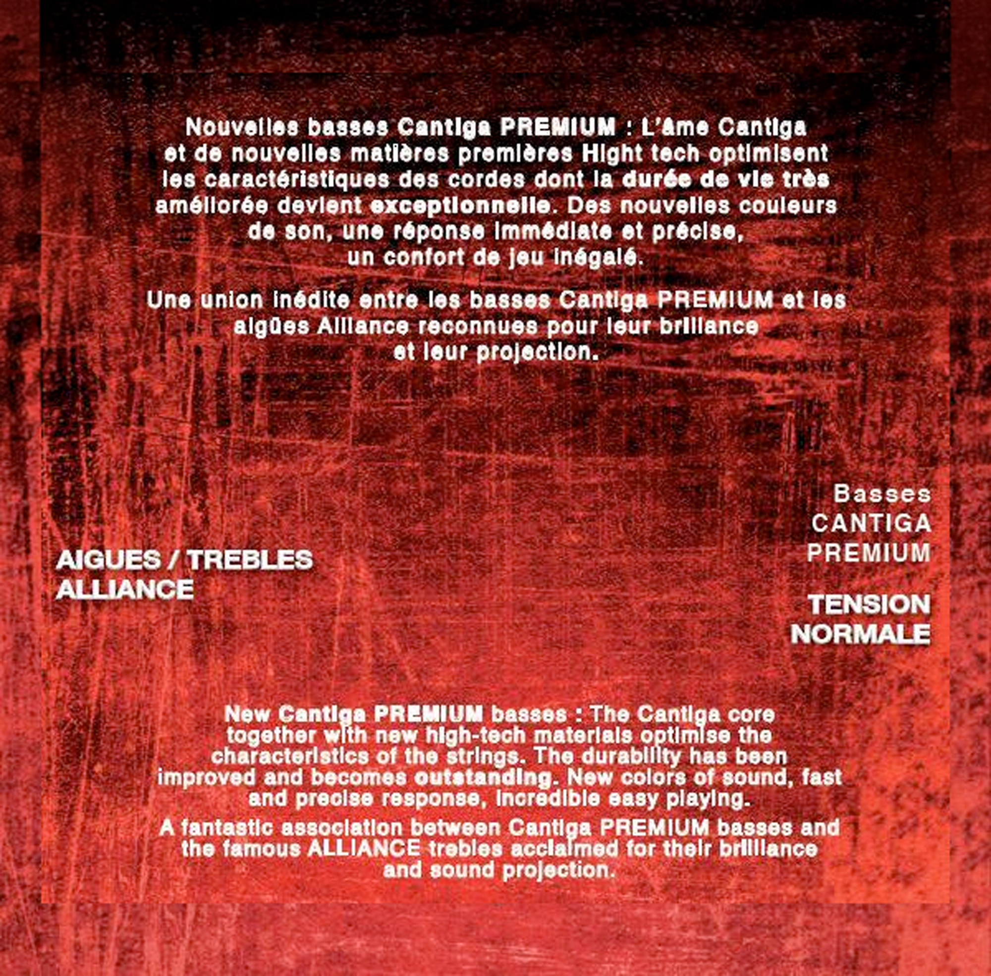 La version en tirant fort est vendue par 12 et comprend également des cordes aiguës Alliance KF ainsi que des cordes basses Cantiga Premium.