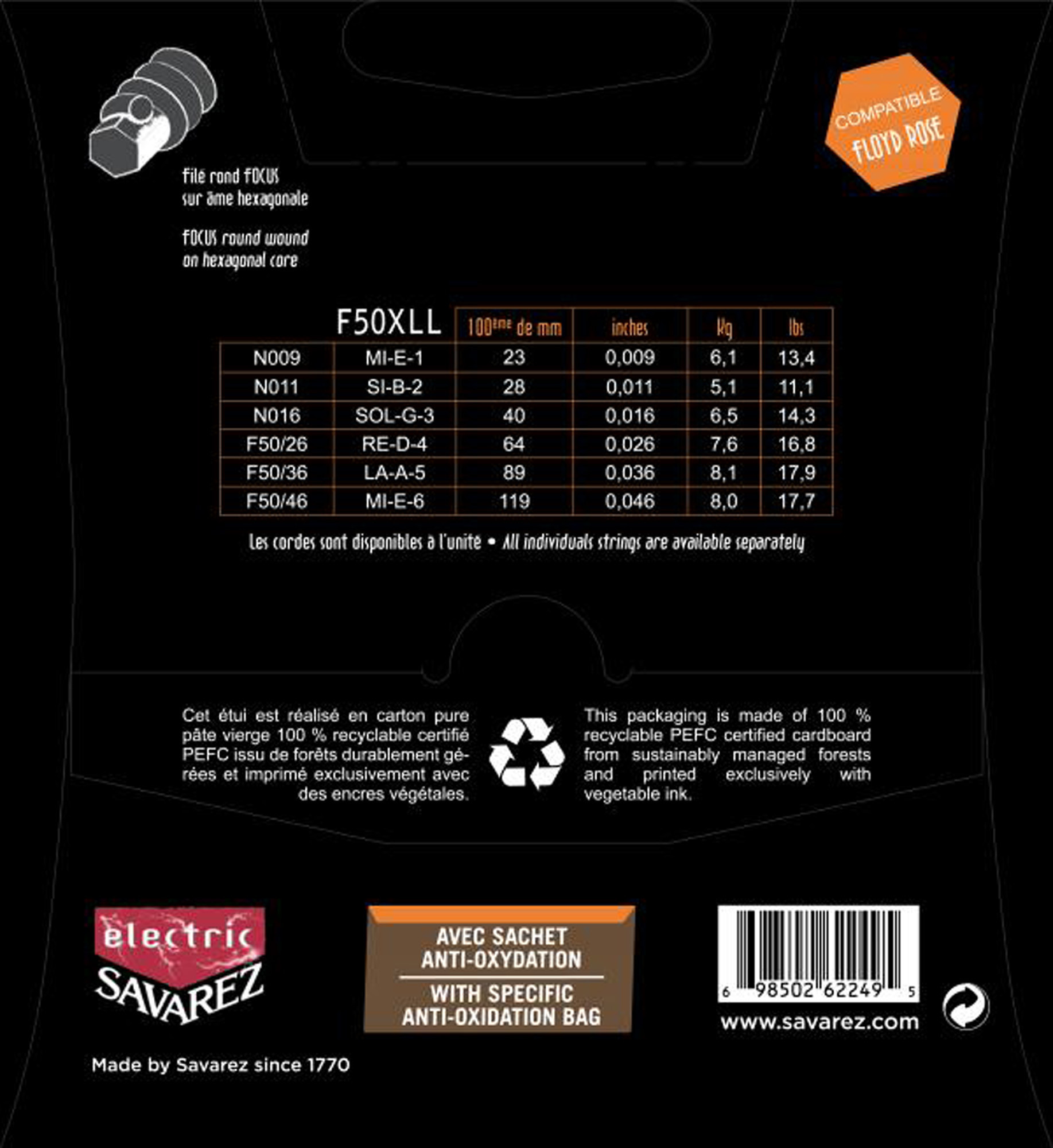 Il s’adresse aux musiciens qui recherchent un tirant mixed light en 09-11-16-26-36-46, avec une configuration compatible Floyd Rose.