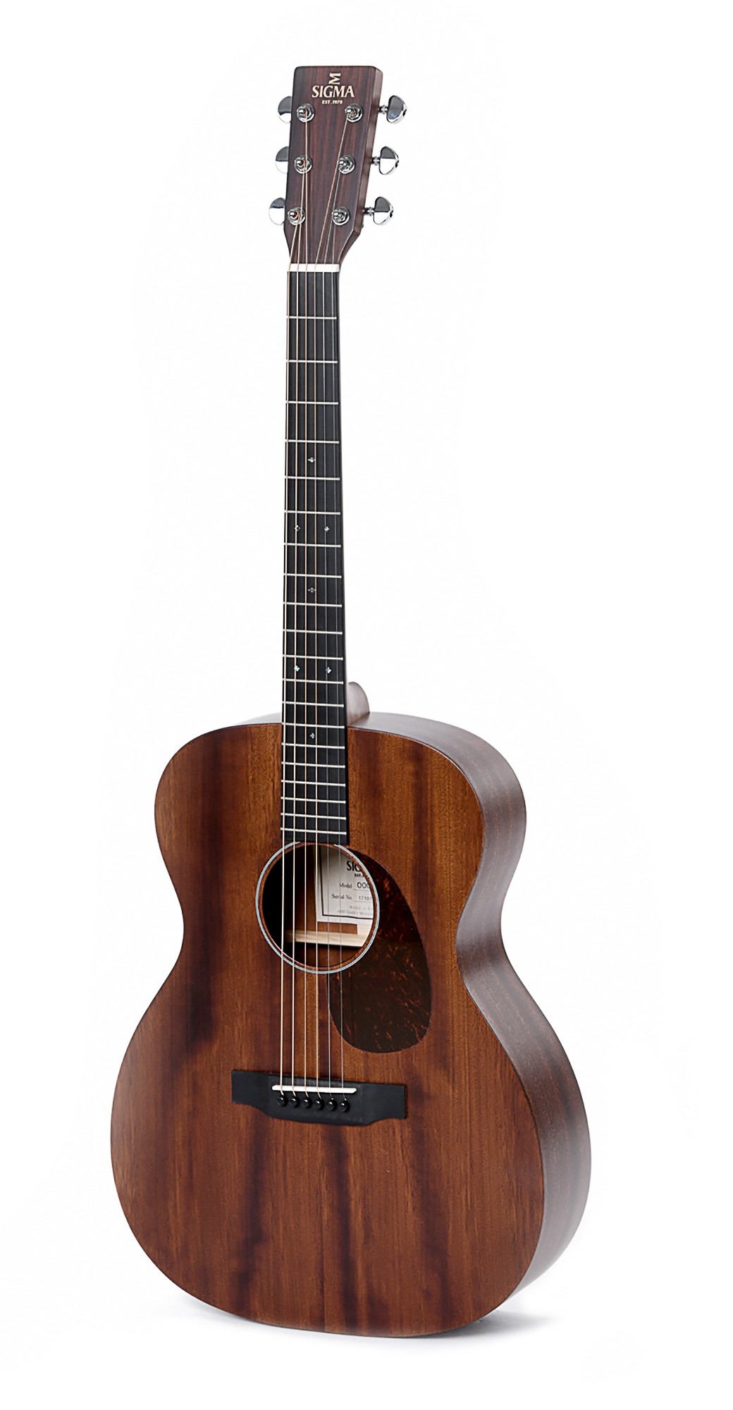Modèle 000M-15, forme 000, avec table en acajou massif, fond et éclisses en acajou, manche en acajou, sillets en os, touche en micarta et finition naturelle satinée.