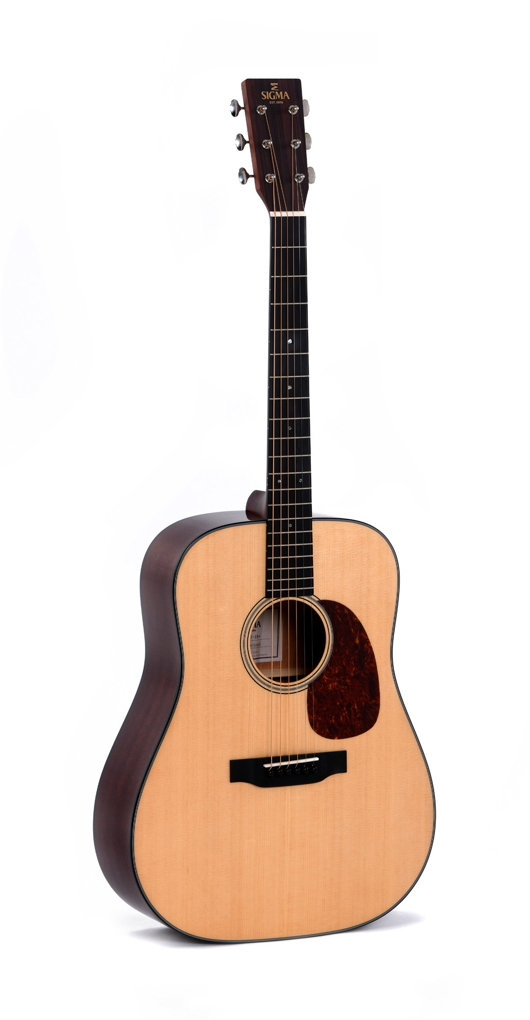 Sigma Serie Standard DM-18 est un modèle Dreadnought conçu pour offrir une projection équilibrée et une finition soignée. Sa table en épicéa massif, associée au fond et aux éclisses en acajou, lui donne une construction classique et fiable, adaptée à de nombreux styles de jeu. La touche en micarta, le manche en acajou, les sillets en os et la finition naturelle brillante complètent un ensemble harmonieux et durable.