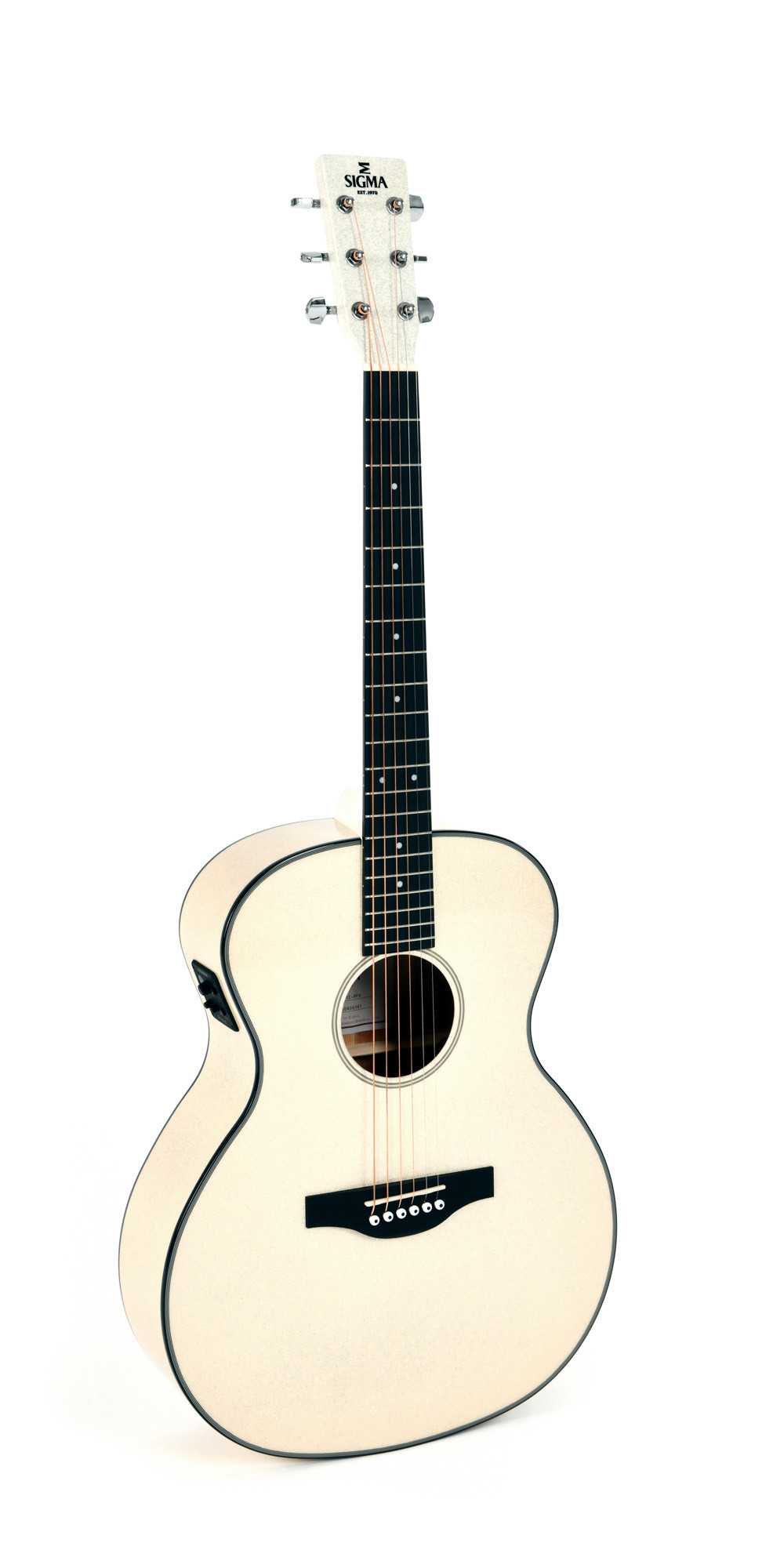 Le modèle GM-1E se distingue par sa conception Grand OM et sa finition blanc pailleté, pour un rendu à la fois élégant et discret. Sa table en épicéa Sitka massif apporte une belle résonance, tandis que le fond et les éclisses en acajou contribuent à un son chaleureux et équilibré. Le manche en acajou, la touche en micarta et les sillets en os participent à une bonne sensation de jeu et à une fabrication soignée.