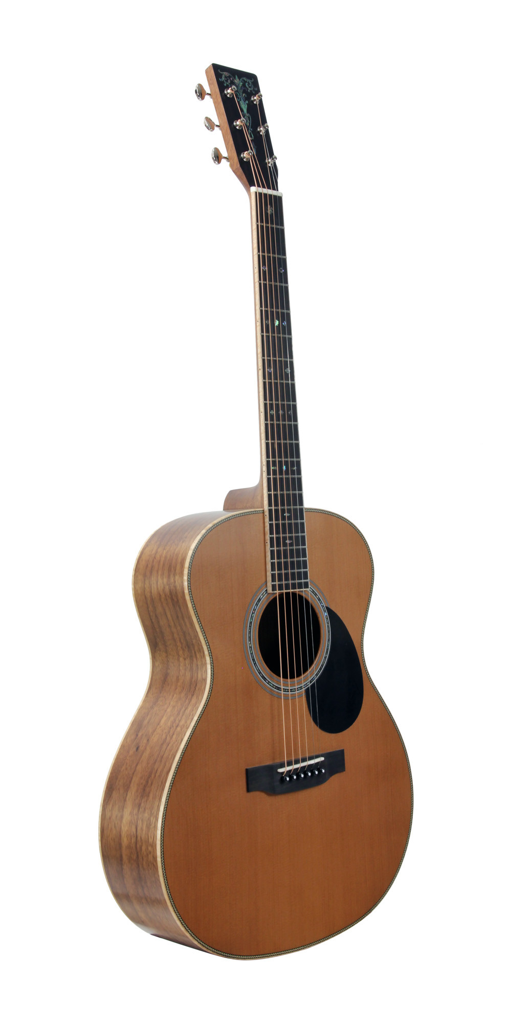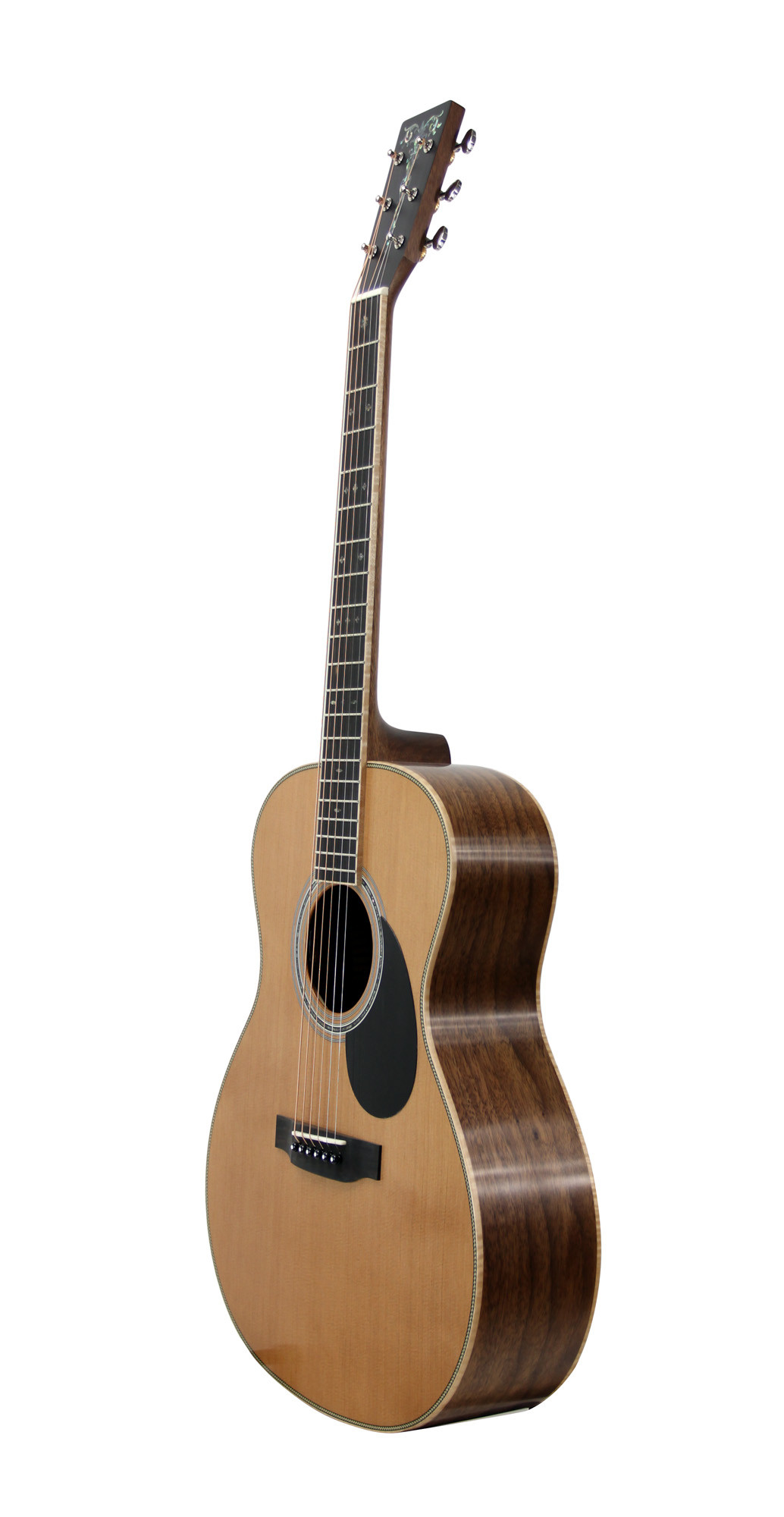 Sa table en cèdre massif, son fond et ses éclisses en noyer massif, sa touche et son chevalet en ébène, ainsi que ses sillets en os et ses mécaniques Grover chromées, témoignent d’un niveau de fabrication soigné.