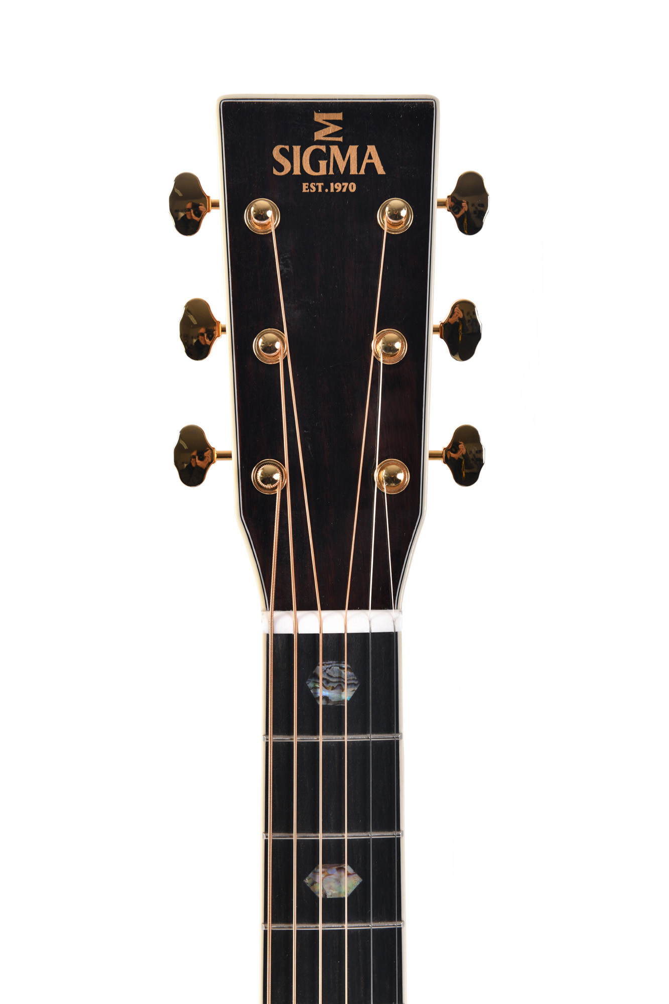 Il se distingue par sa table en épicéa Sitka massif, son fond et ses éclisses en palissandre indien massif de qualité A, sa touche et son chevalet en ébène, ainsi que ses sillets en os et ses mécaniques Grover dorées.