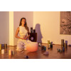 Ce modèle se distingue par sa composition en quartz et sa couleur orange à effet gelé. Son accord en D4 293,67 Hz en fait un instrument pensé pour une utilisation axée sur le chakra sacré. Son format de 13" offre une présence adaptée à cet usage.