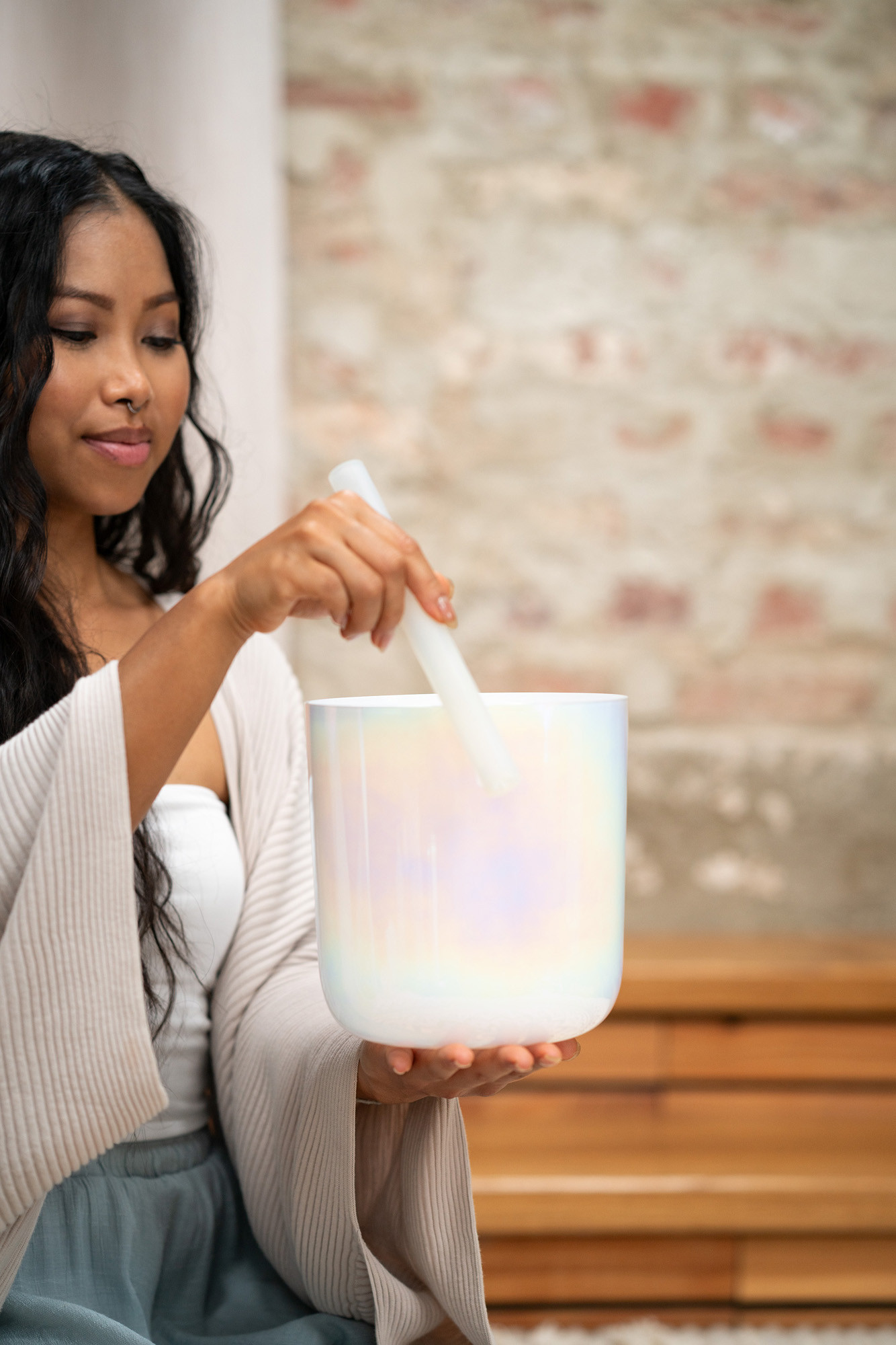 SINGING BOWL SONIC ENERGY ESSENCE CRYSTAL 7" NOTE B3, CRÈME, CHAKRA COURONNE