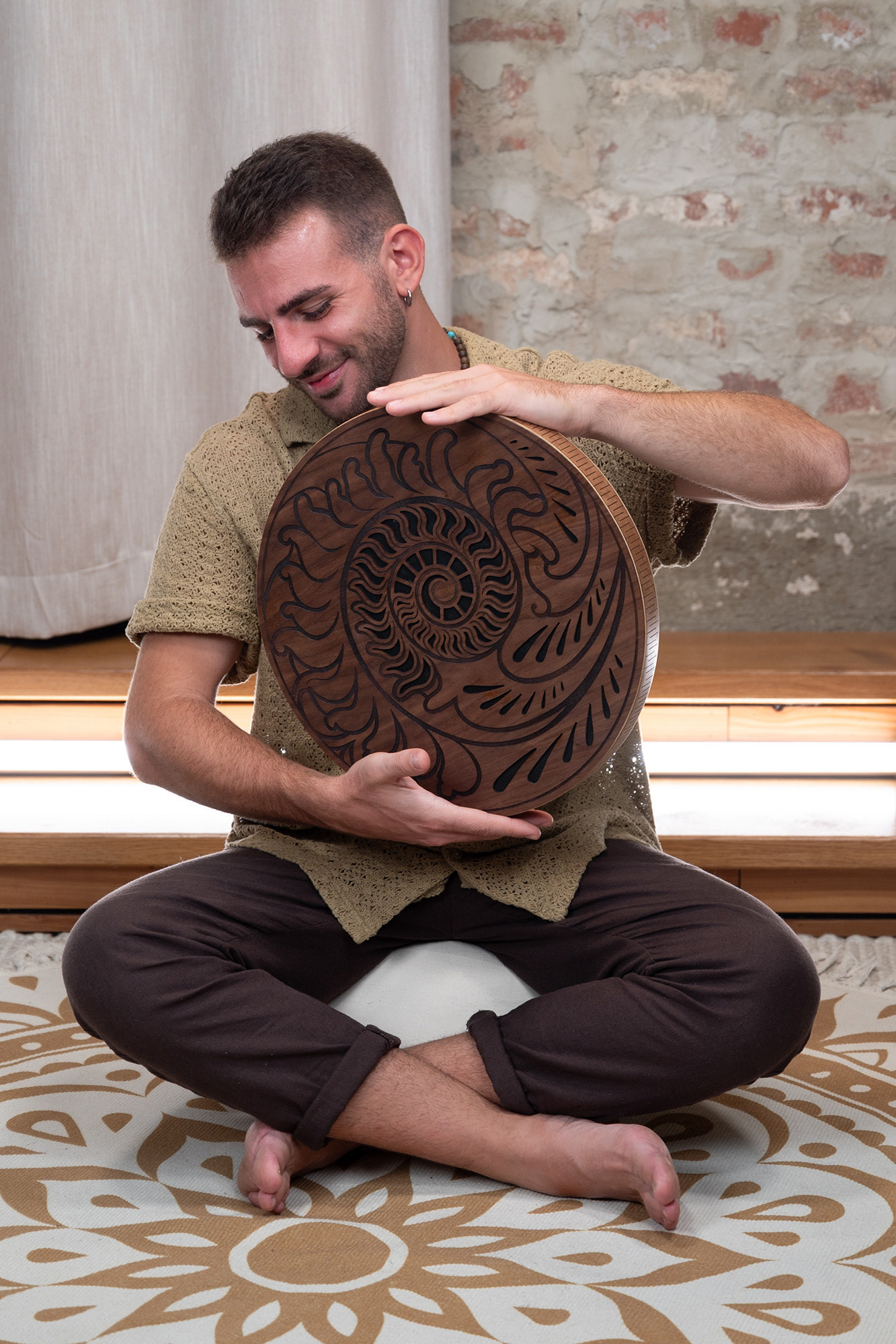 Ce disque sonore en noyer est conçu avec une surface sculptée pour produire des sons apaisants, proches de ceux de l’eau. Avec son diamètre de 38,10 cm et sa hauteur de 3,4 cm, il offre une présence harmonieuse et un format adapté à une utilisation confortable. Il est livré avec un sac souple et un support en bois pour un rangement et une présentation soignés.