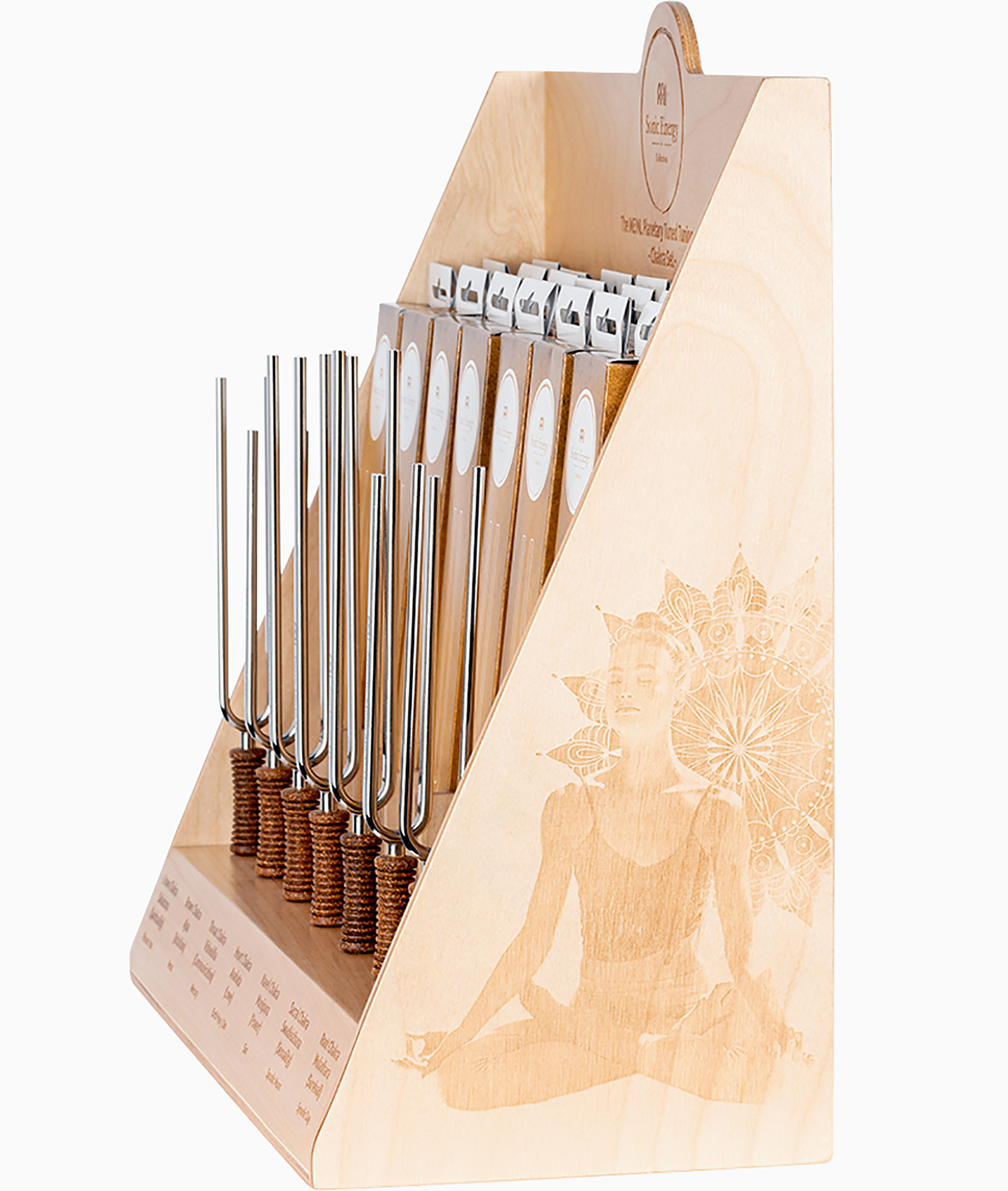 Il se distingue par sa composition complète regroupant plusieurs diapasons Sonic Energy précis, ce qui en fait une solution simple pour exposer l’ensemble des modèles mentionnés dans un même présentoir.