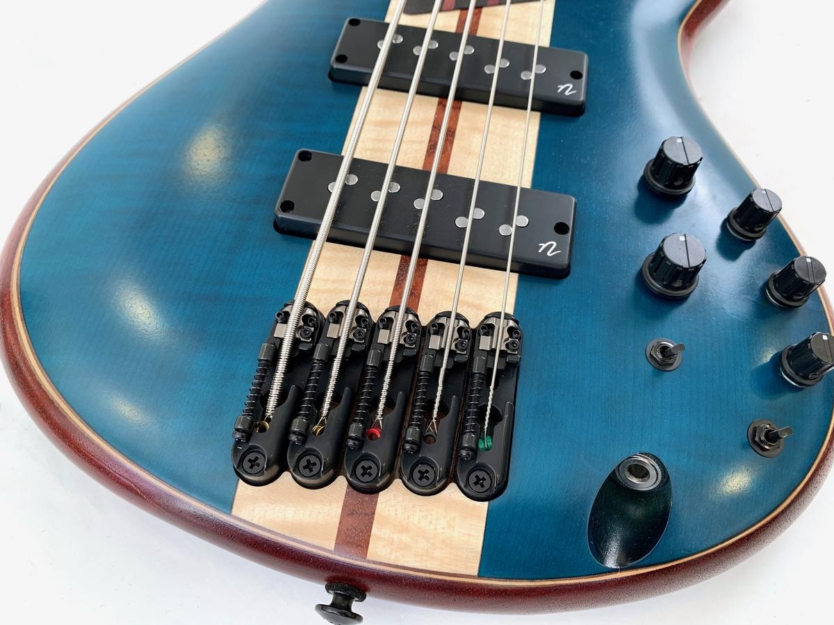 Cette bass 5 cordes est faite d'un manche en cinq parties avec une touche en érable, le corps pour sa part se compose également d'érable ainsi que d'acajou. La partie électronique est confiée à Nordstrand avec une paire de micros Big Break. En excellent état.