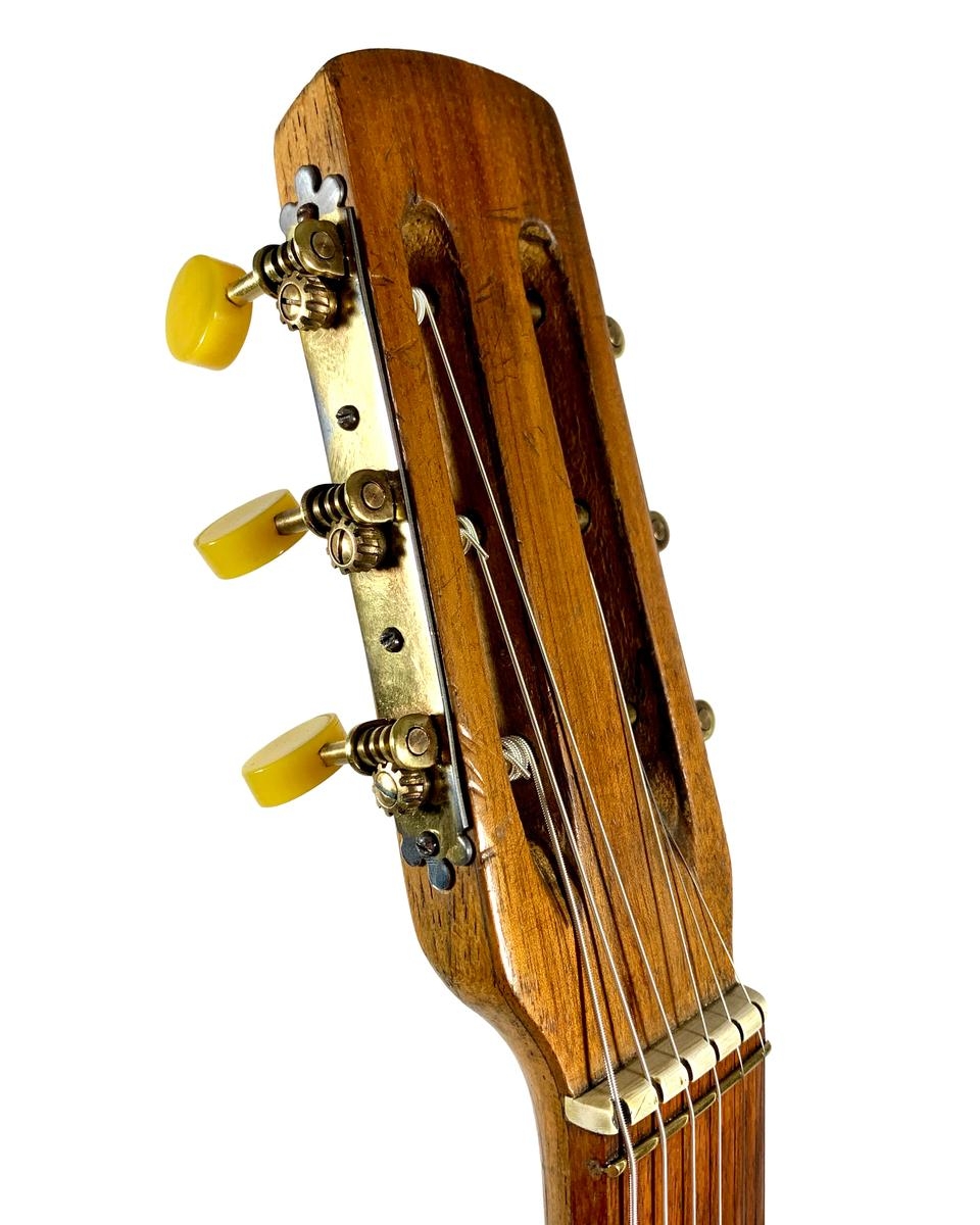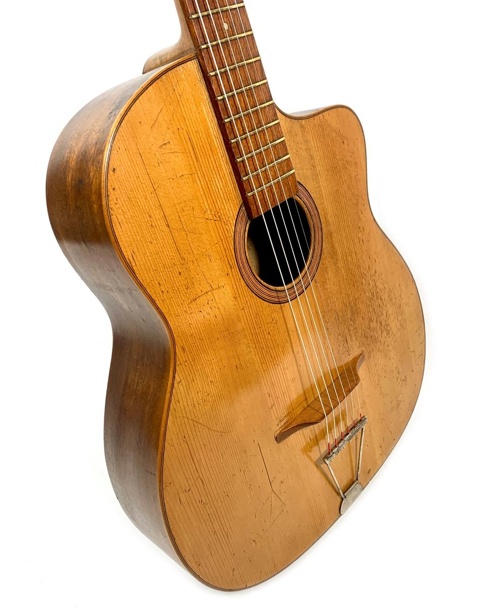 Here for sale is a sublime gypsy guitar, round soundhole model, made in the family workshop in Marseille during the 1950s.