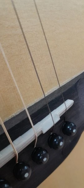 Defects: moderate finishing flaw with imperfections around the bridge.