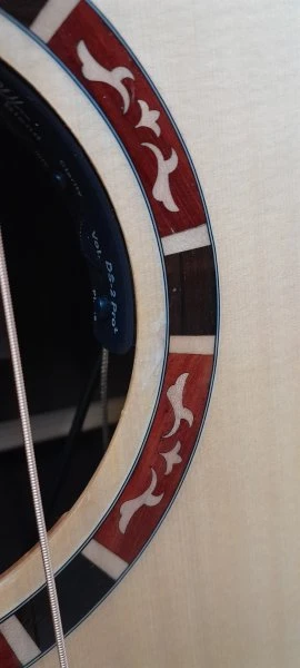 - Electronics: DS-2 preamp system with rosette-mounted microphone and undersaddle pickup