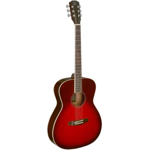 Transparent redburst auditorium acoustic guitar with solid spruce top, Bessie series.
