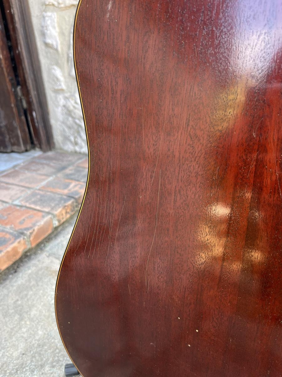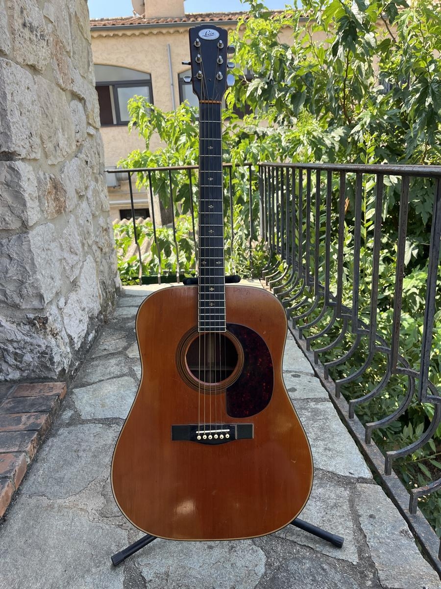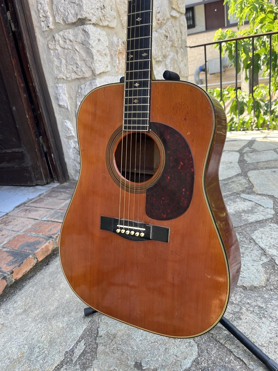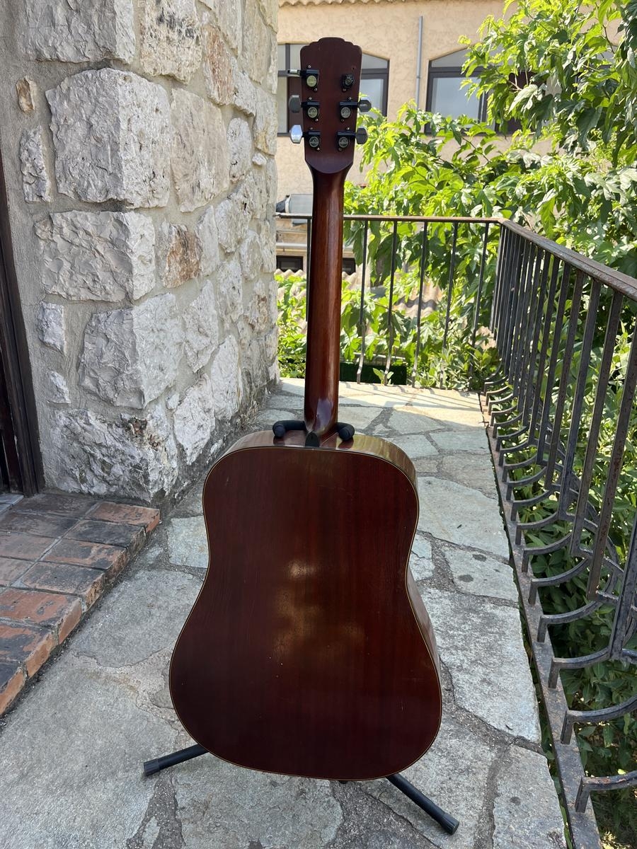 Dive into sonic excellence with this 6-string acoustic guitar, made in Sweden in 1972. Inspired by the Martin D-18 model, this guitar features an Alpine spruce top that ensures clear and powerful resonance, while the mahogany body and neck offer unrivaled robustness and deep sustain. The ebony fingerboard and bridge enhance note responsiveness and precision. The nitrocellulose finish, despite some cracks on the back, adds undeniable vintage charm. A case is included for instrument protection, and please note that the broken D tuner can be replaced for a modest fee of 40 Euros.