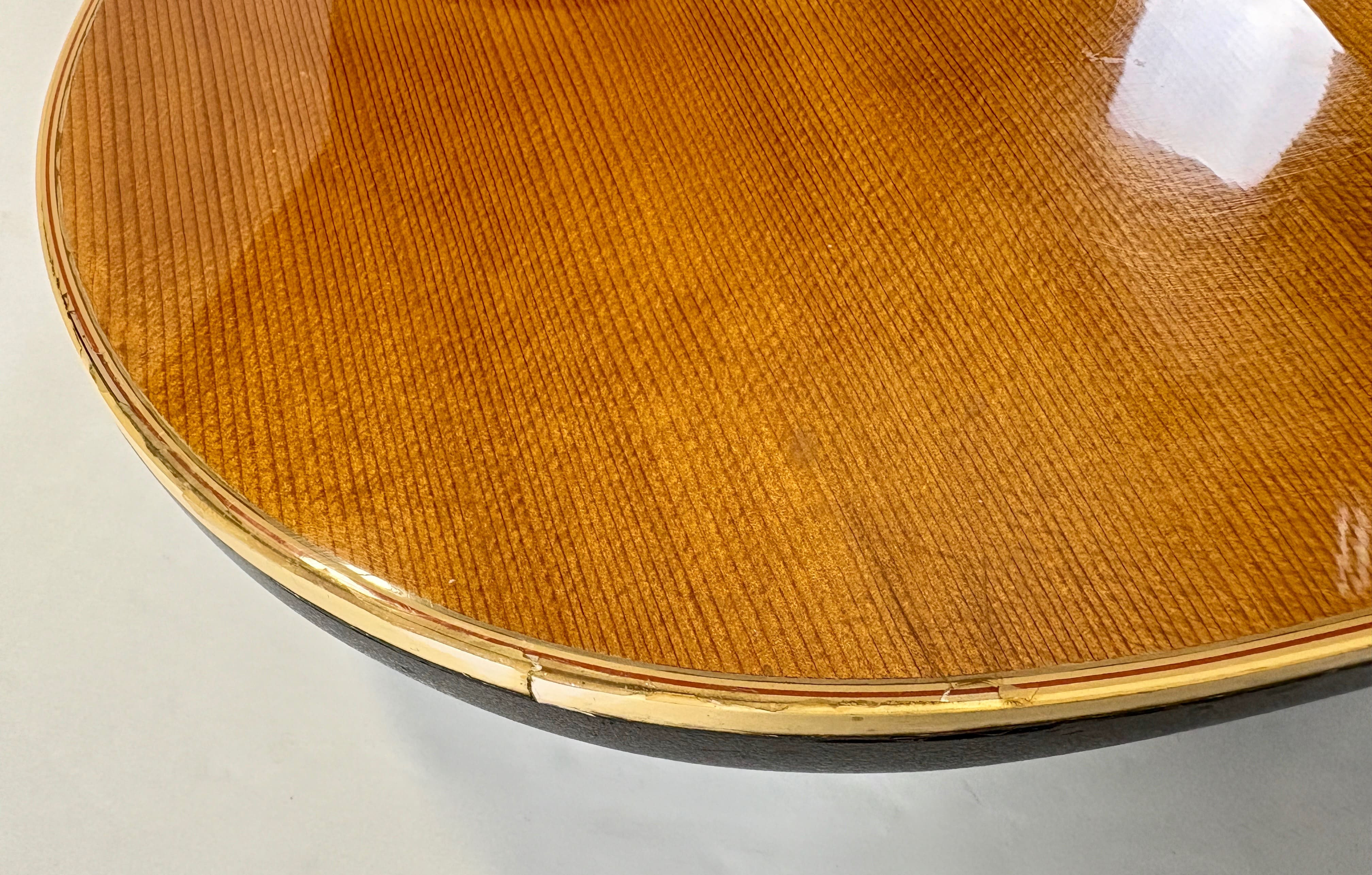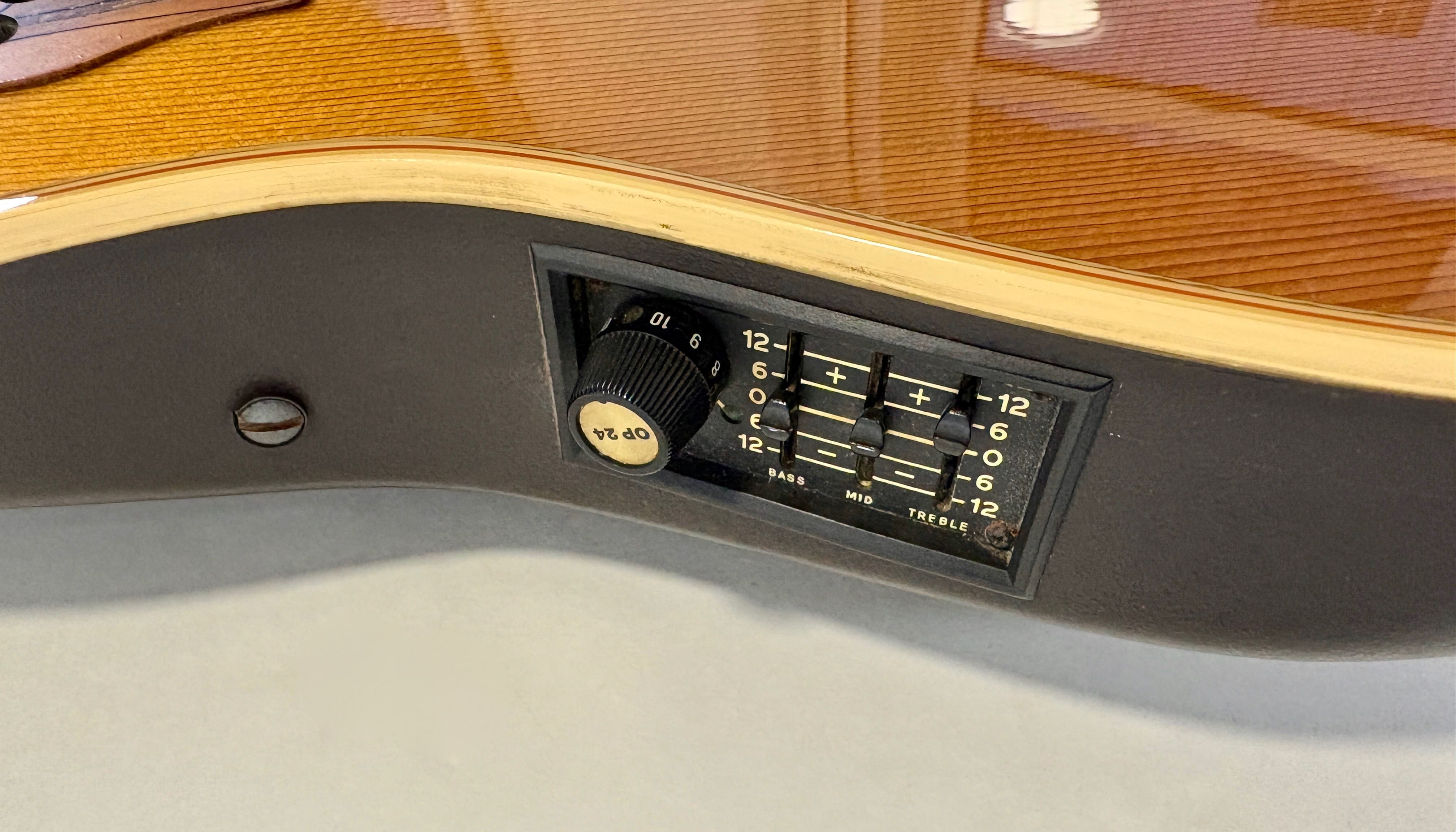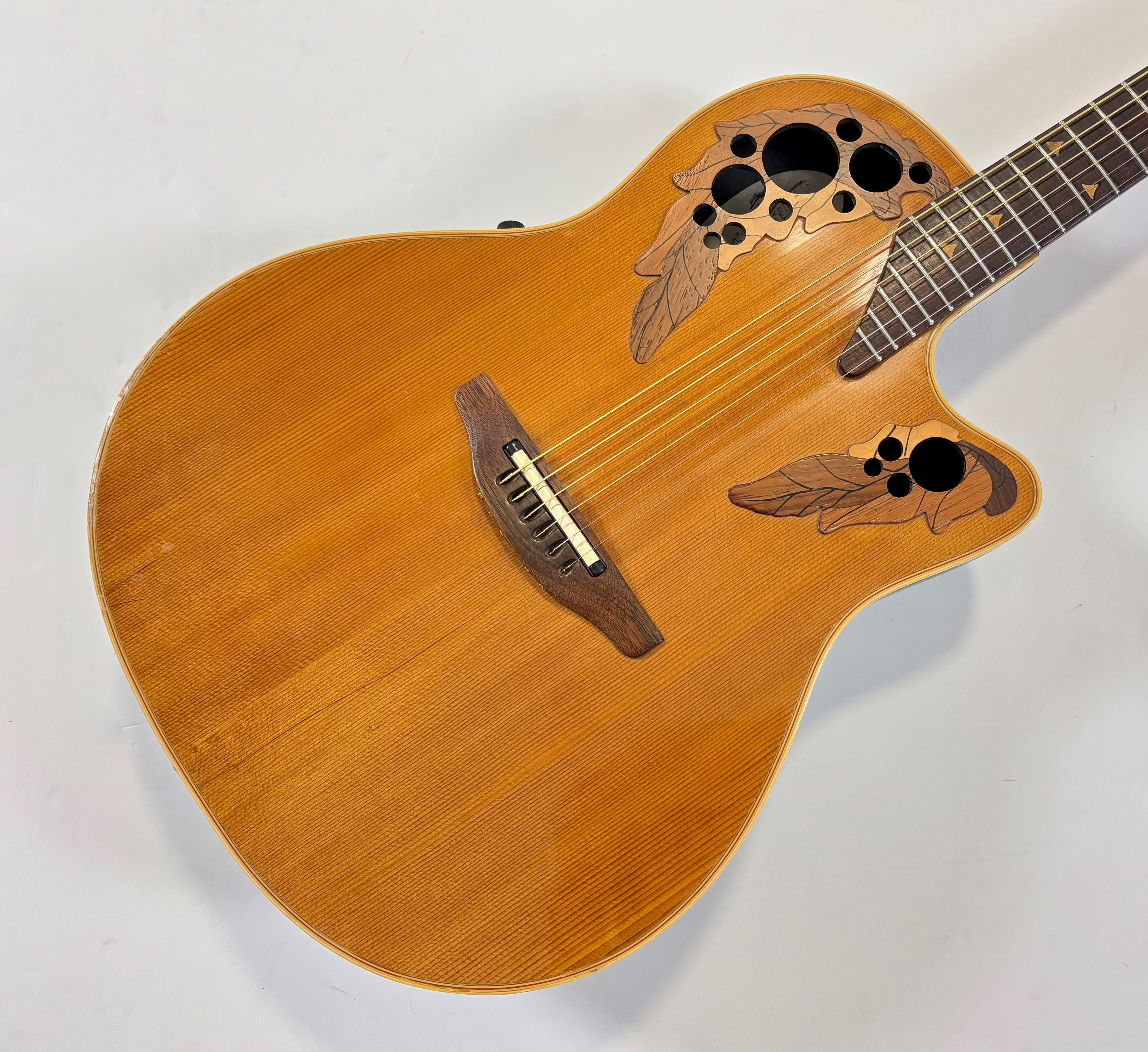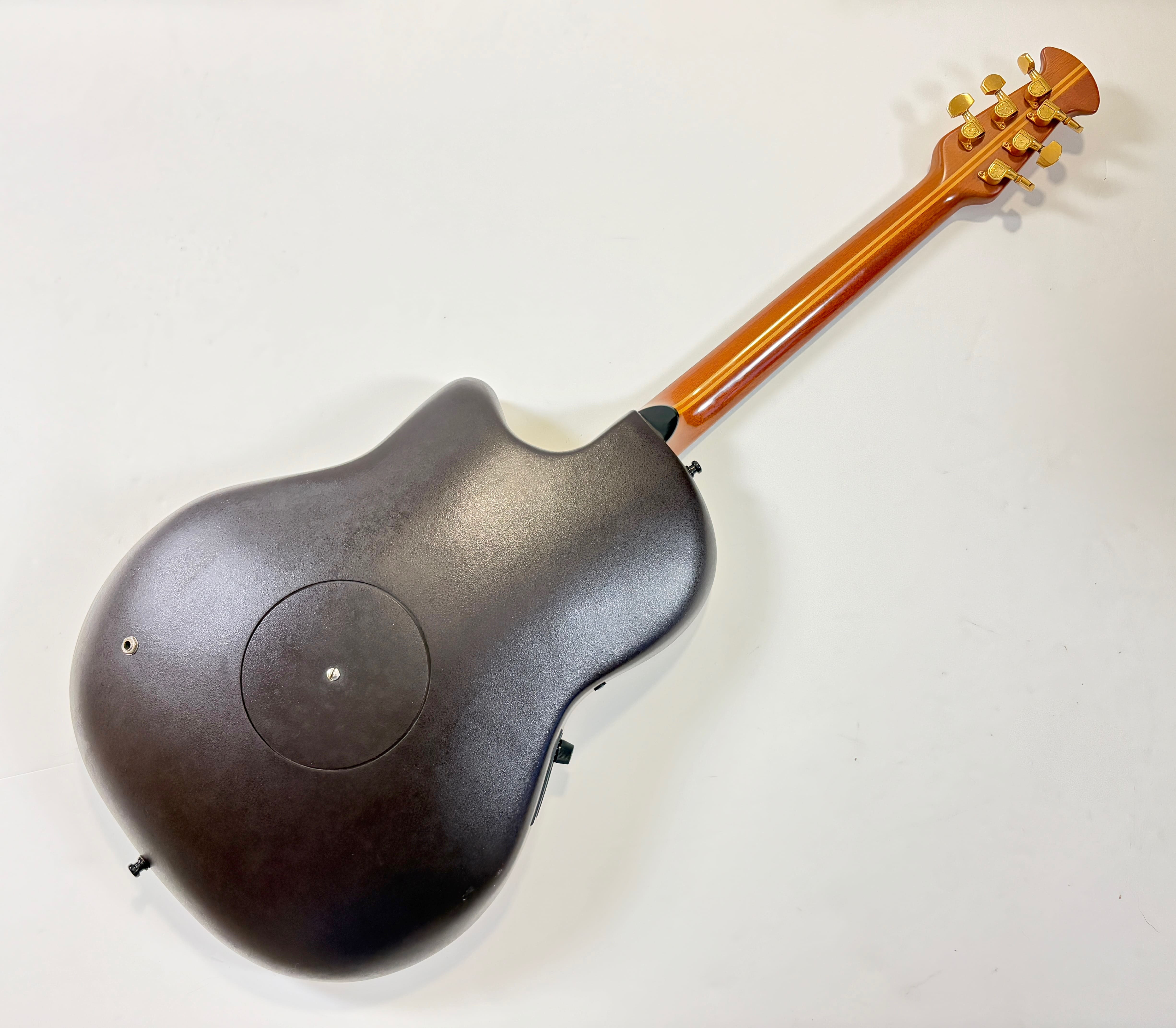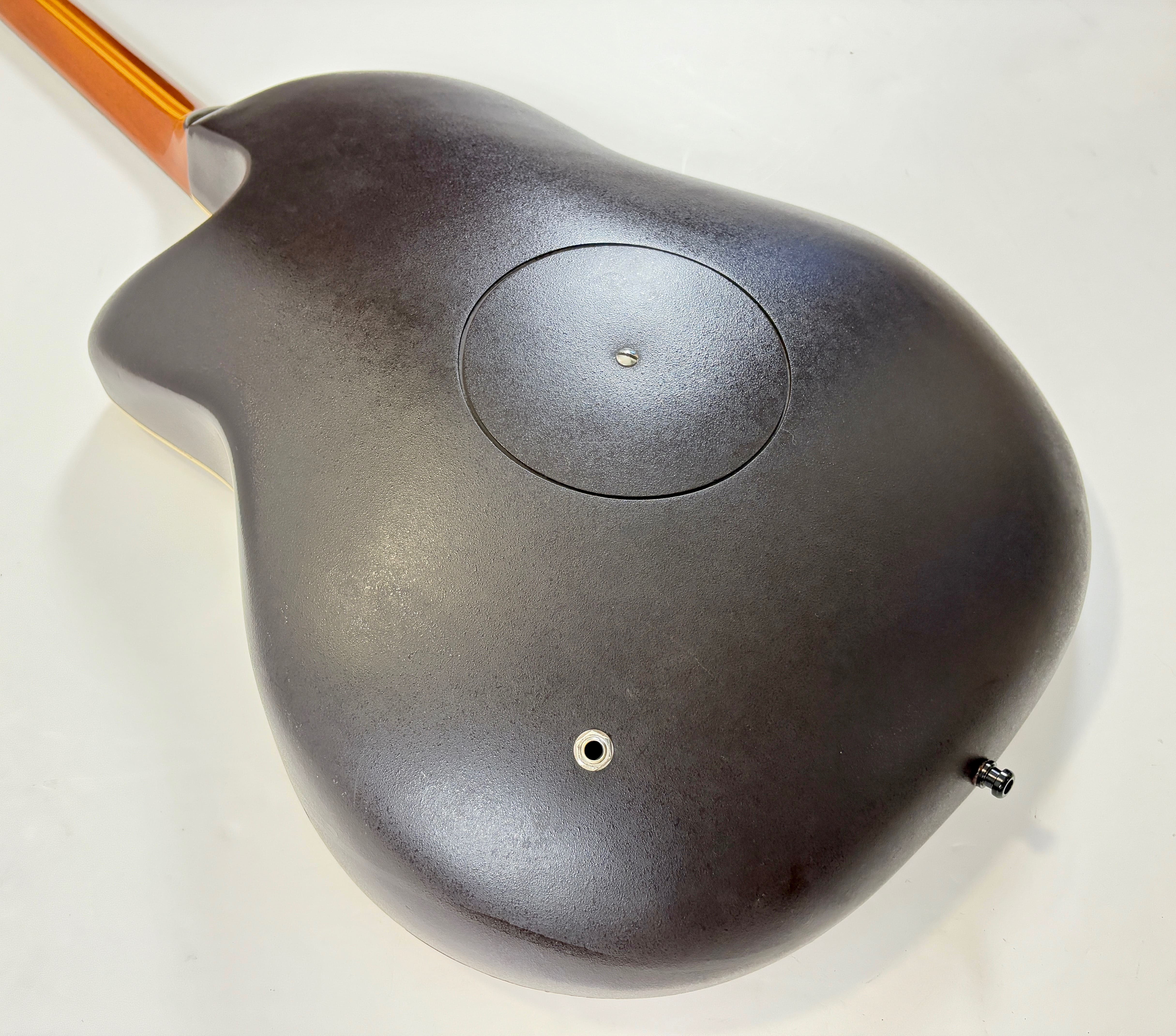 This Ovation electro-acoustic, of course made in the USA, features a body made from the brand’s signature material: Lyrachord! The solid top is spruce, the neck is mahogany with maple, and both the bridge and fingerboard are rosewood. It has had a repair to the binding and is equipped with the OP-24 preamp. Sold with a gigbag. More pix and details upon request. Shipping worldwide available.