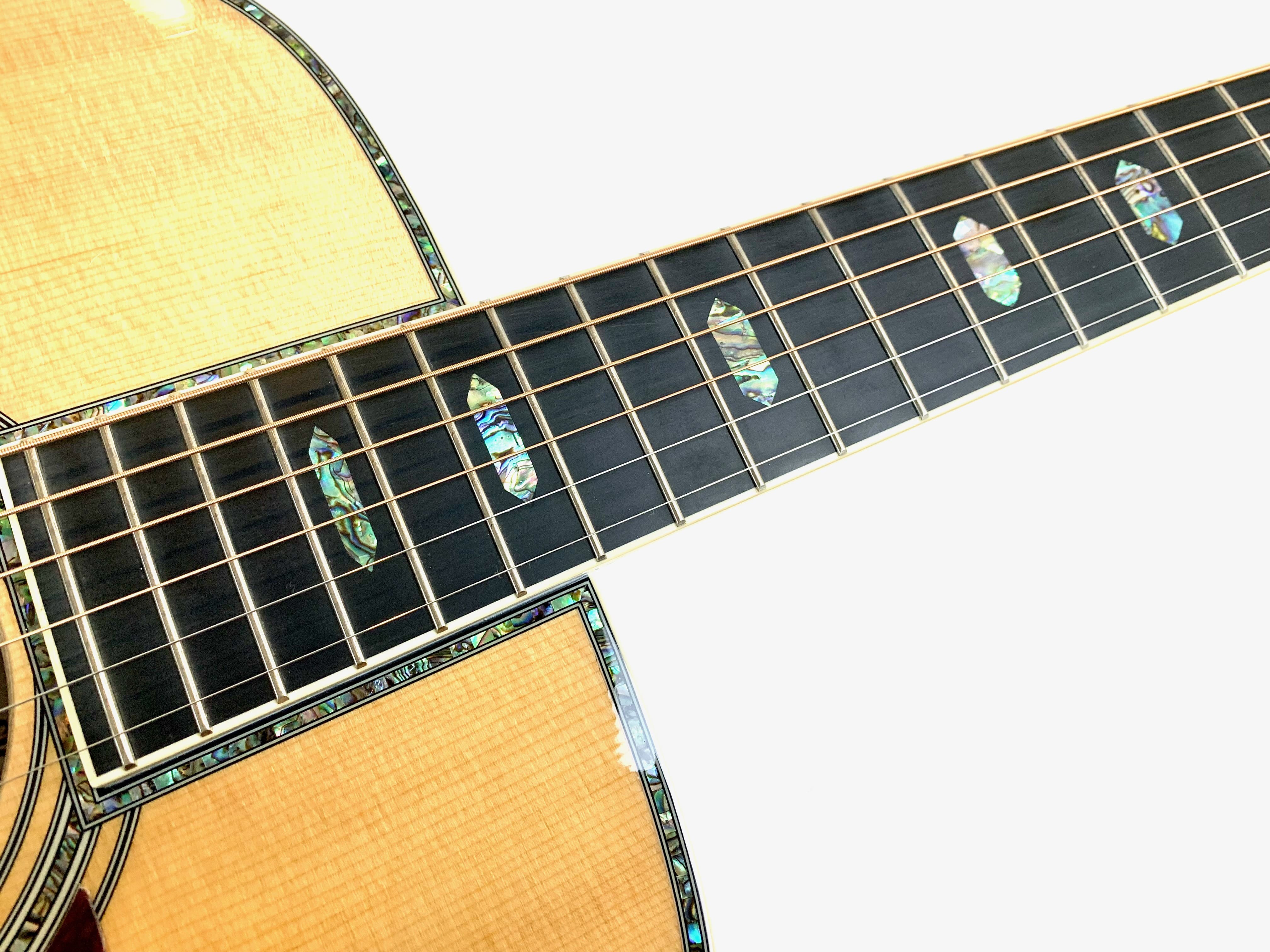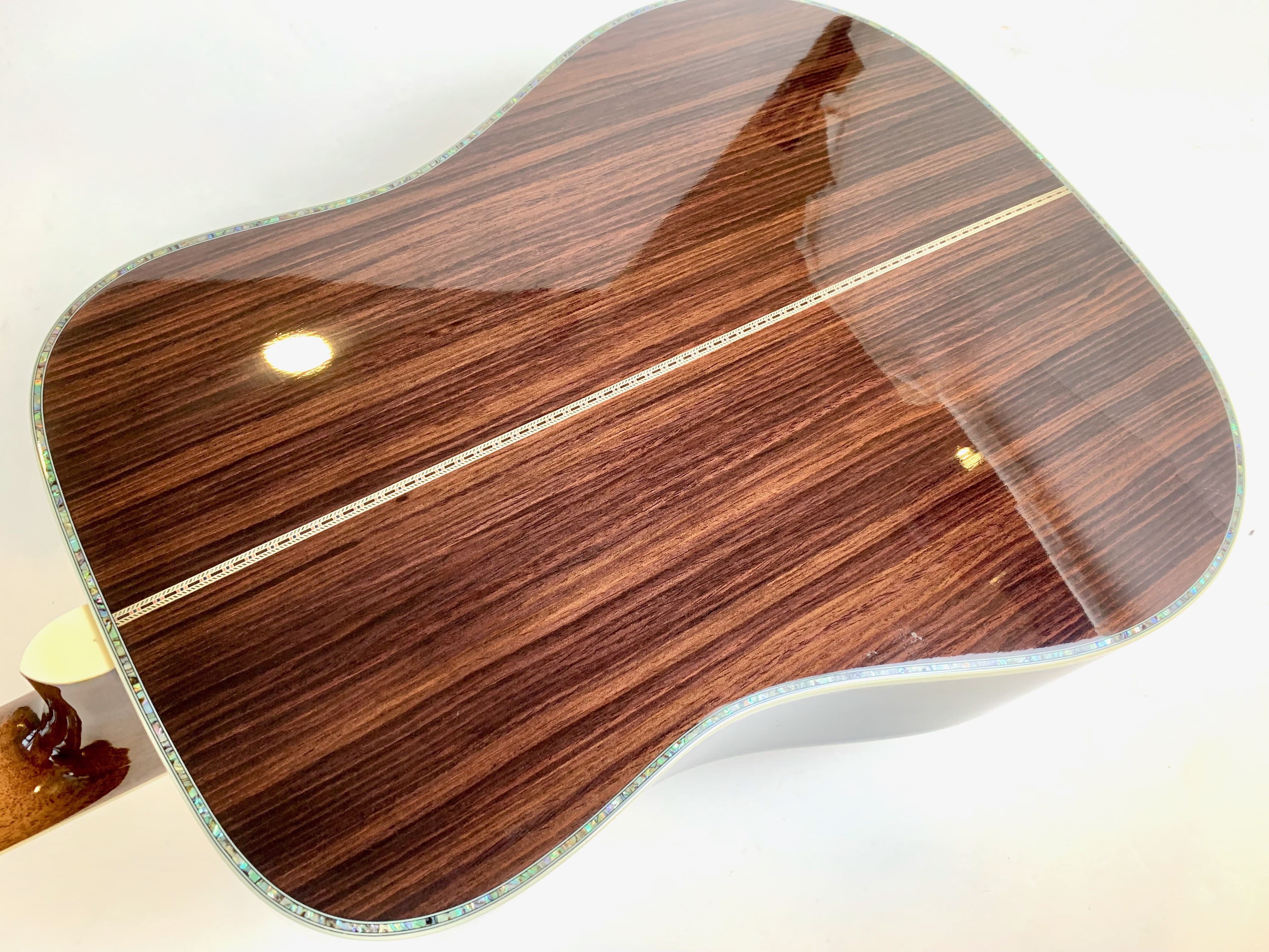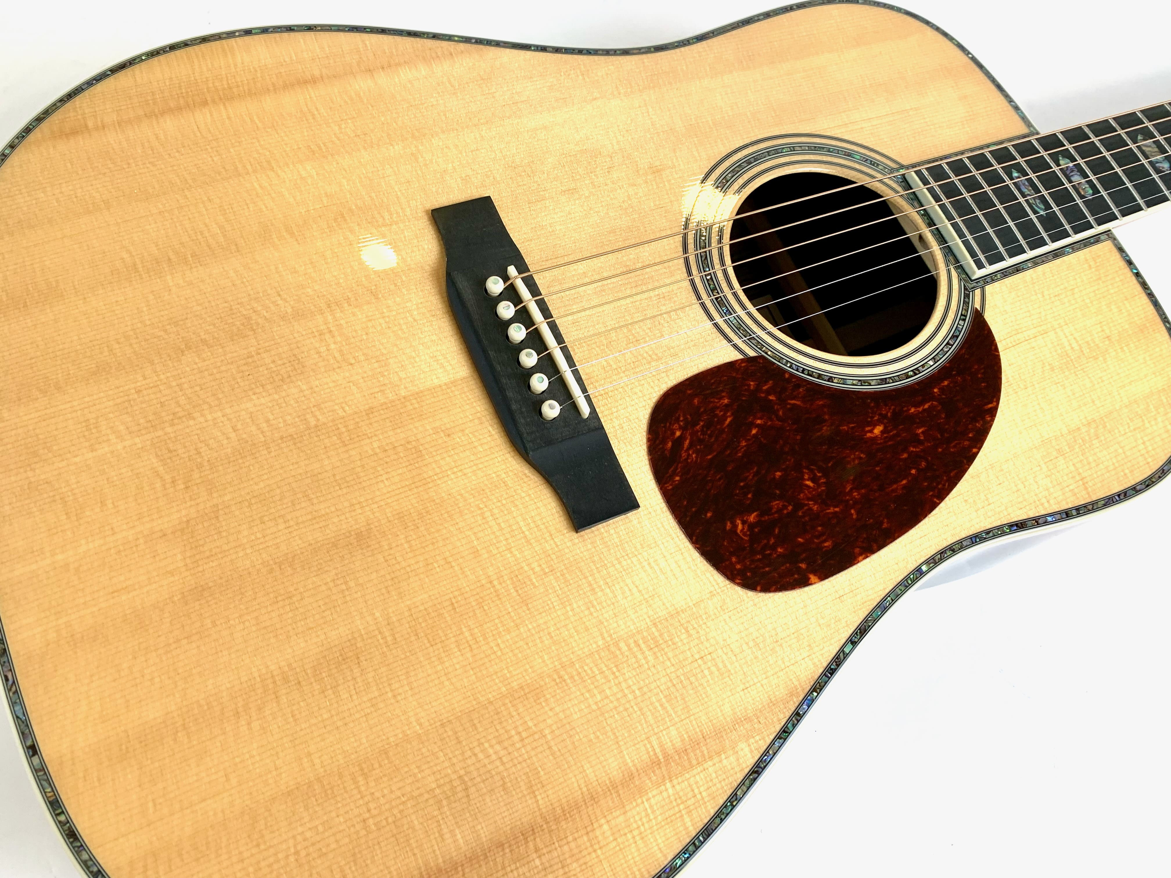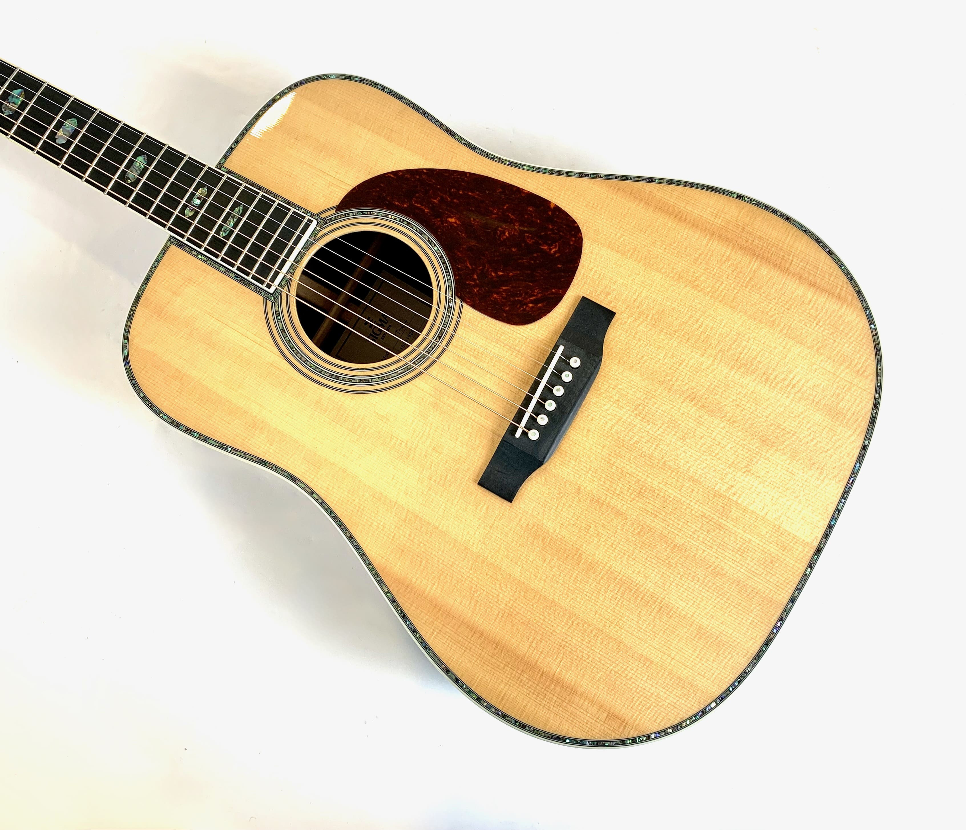 The D-45 sits at the very top of the dreadnought range: at Martin, the higher the number, the more elaborately appointed the guitar. Abalone purfling around the top and rosette, fingerboard inlays, and more. Here is a much more affordable version, offered by Sigma. In terms of construction, it features a Sitka spruce top, basswood back and sides, a mahogany neck, and Micarta fingerboard and bridge. In very good condition.