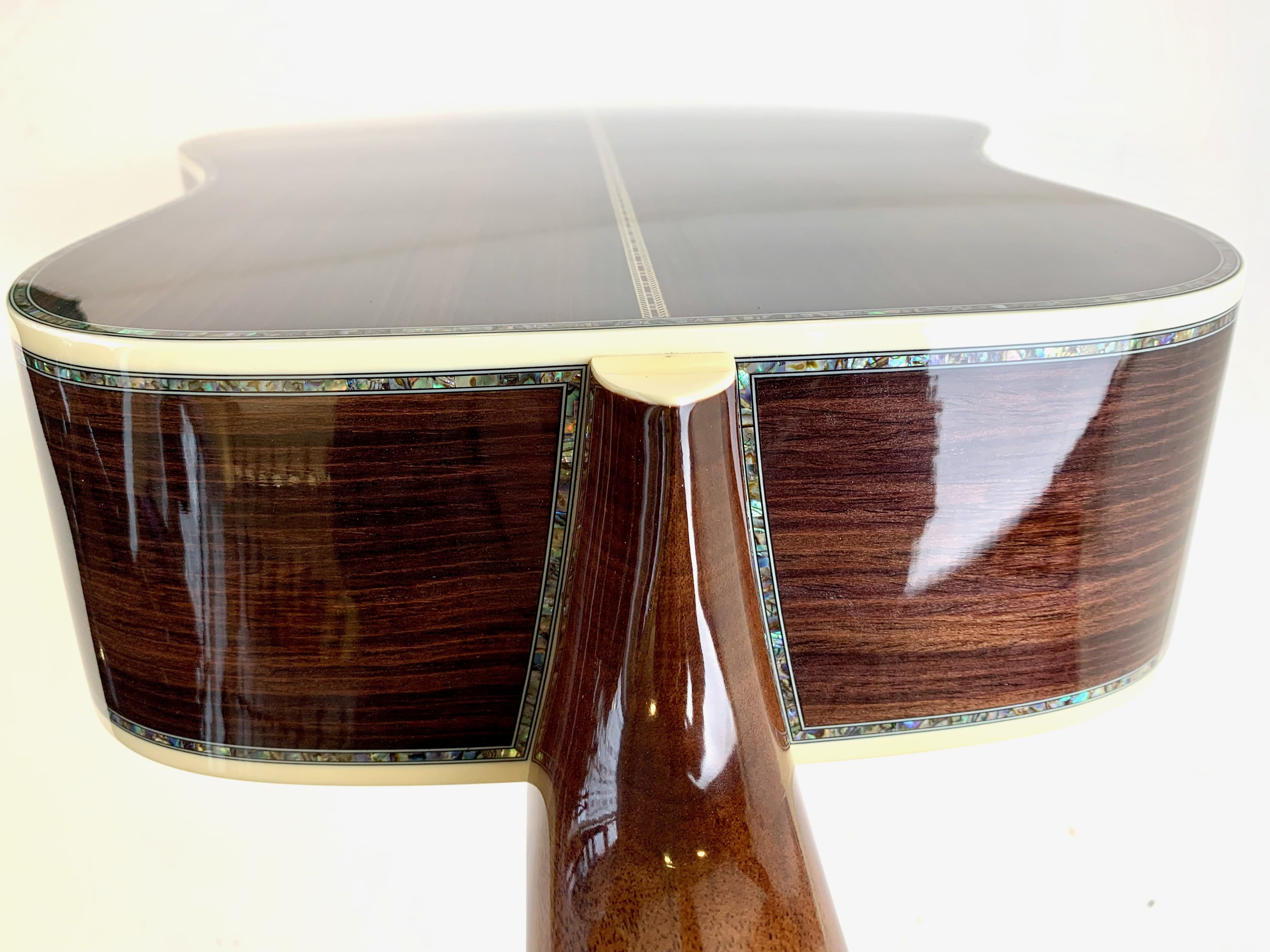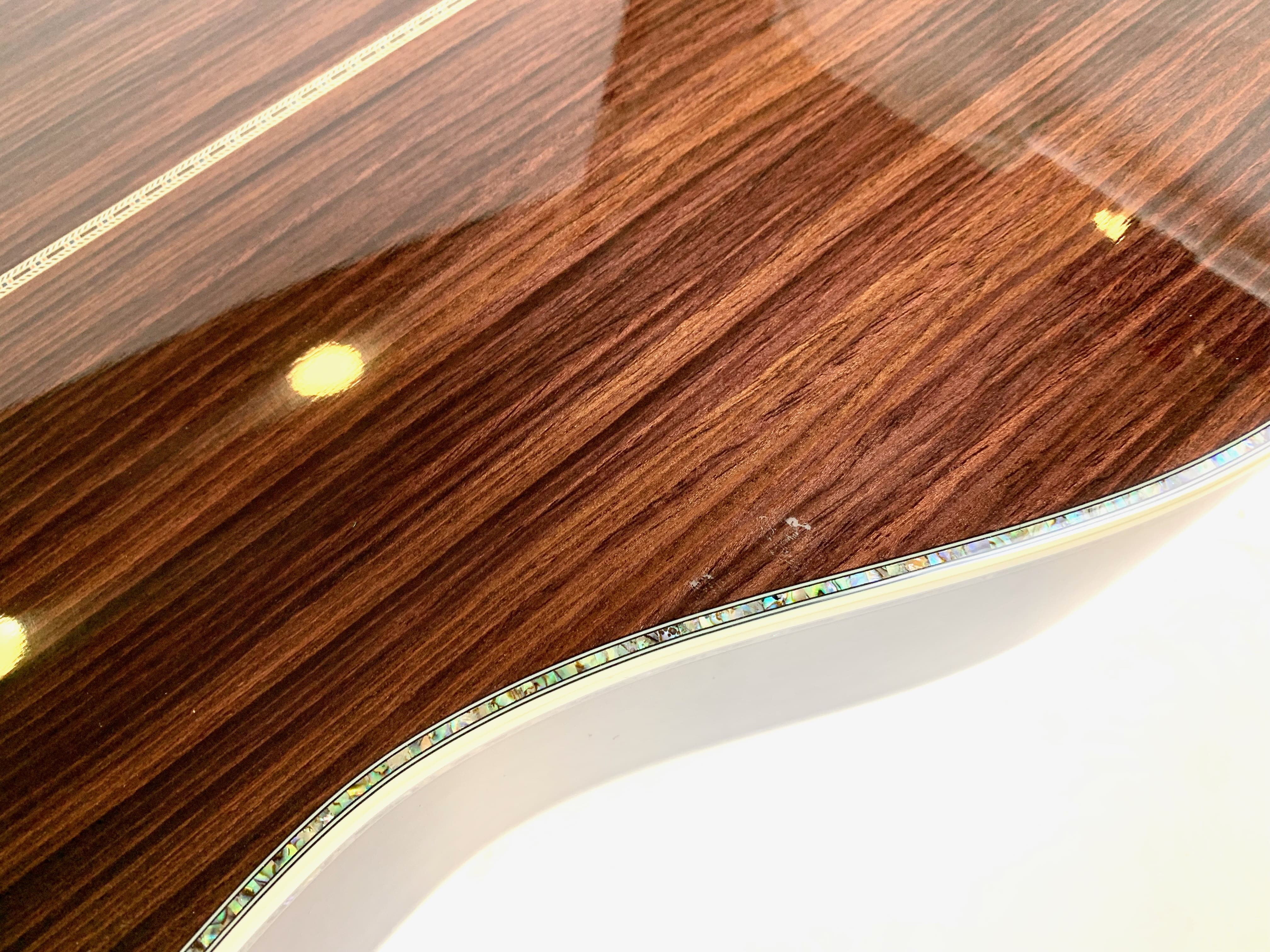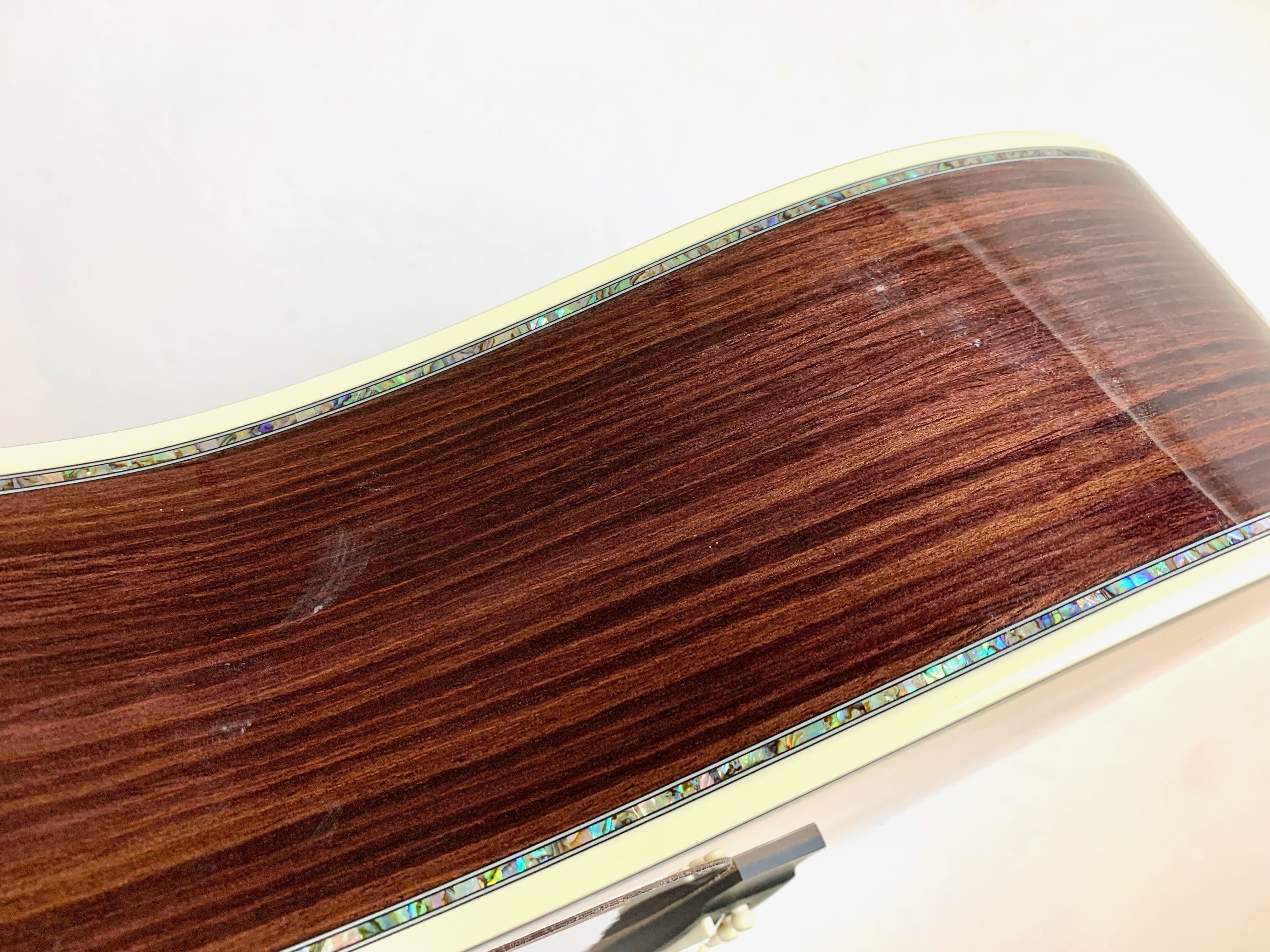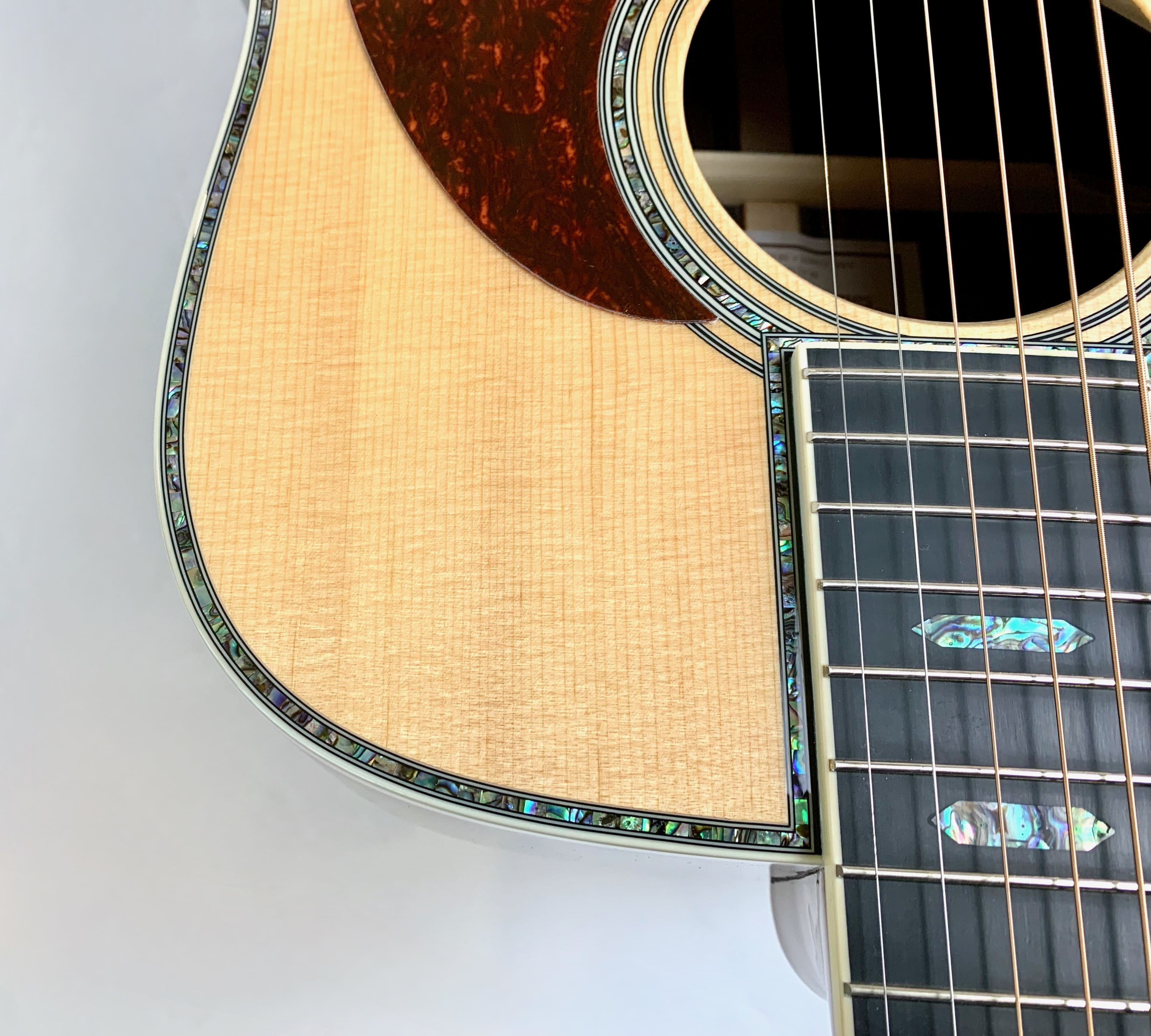 The D-45 sits at the very top of the dreadnought range: at Martin, the higher the number, the more elaborately appointed the guitar. Abalone purfling around the top and rosette, fingerboard inlays, and more. Here is a much more affordable version, offered by Sigma. In terms of construction, it features a Sitka spruce top, basswood back and sides, a mahogany neck, and Micarta fingerboard and bridge. In very good condition.