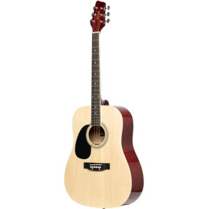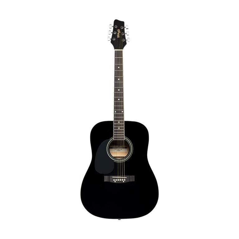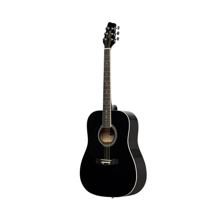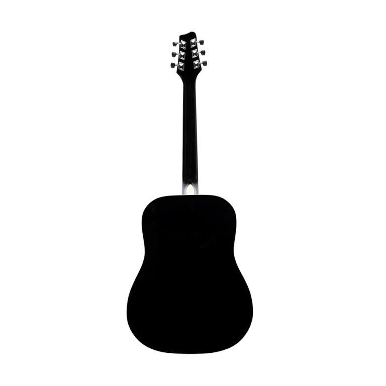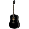 Black 4/4 dreadnought acoustic guitar with spruce top, left-handed model