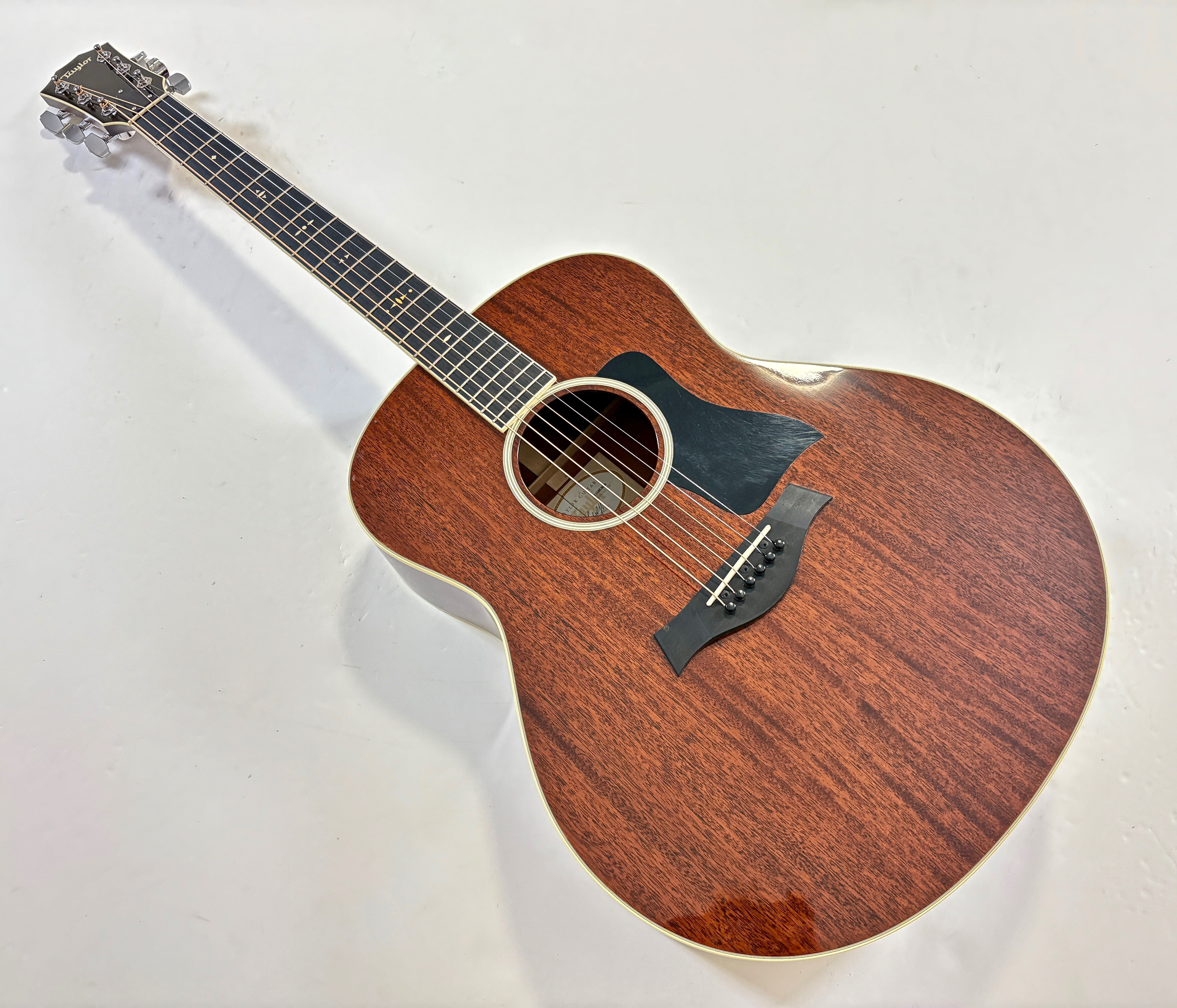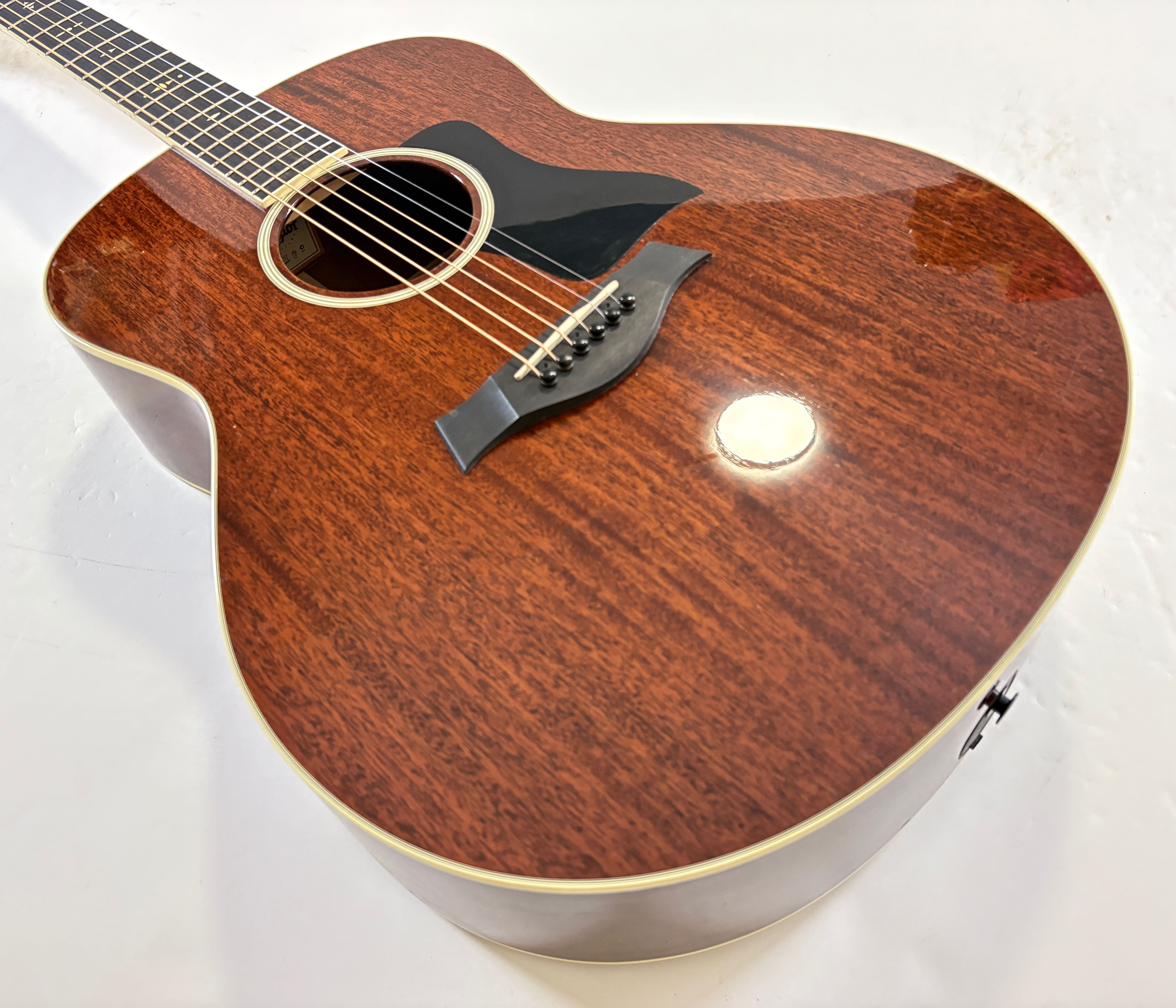 The 528e is a high-end electro-acoustic guitar from the 500 Series, recognizable for its all-solid mahogany construction and its large Grand Orchestra body shape, the biggest in Taylor’s lineup. The fingerboard and bridge are made of ebony. It delivers a very full sound, with strong bass response, rich midrange, and a well-balanced tonal spectrum, making it equally suited for powerful strumming and fingerstyle playing. Thanks to its Expression System 2, it is perfectly adapted for both stage and studio use, offering a faithful and dynamic amplified tone. Overall, it is a highly expressive, warm, and powerful instrument, designed for musicians seeking depth, precision, and versatility. In very good condition, it comes with its paperwork and is sold within its original case. More pix and details upon request. Shipping worldwide available.