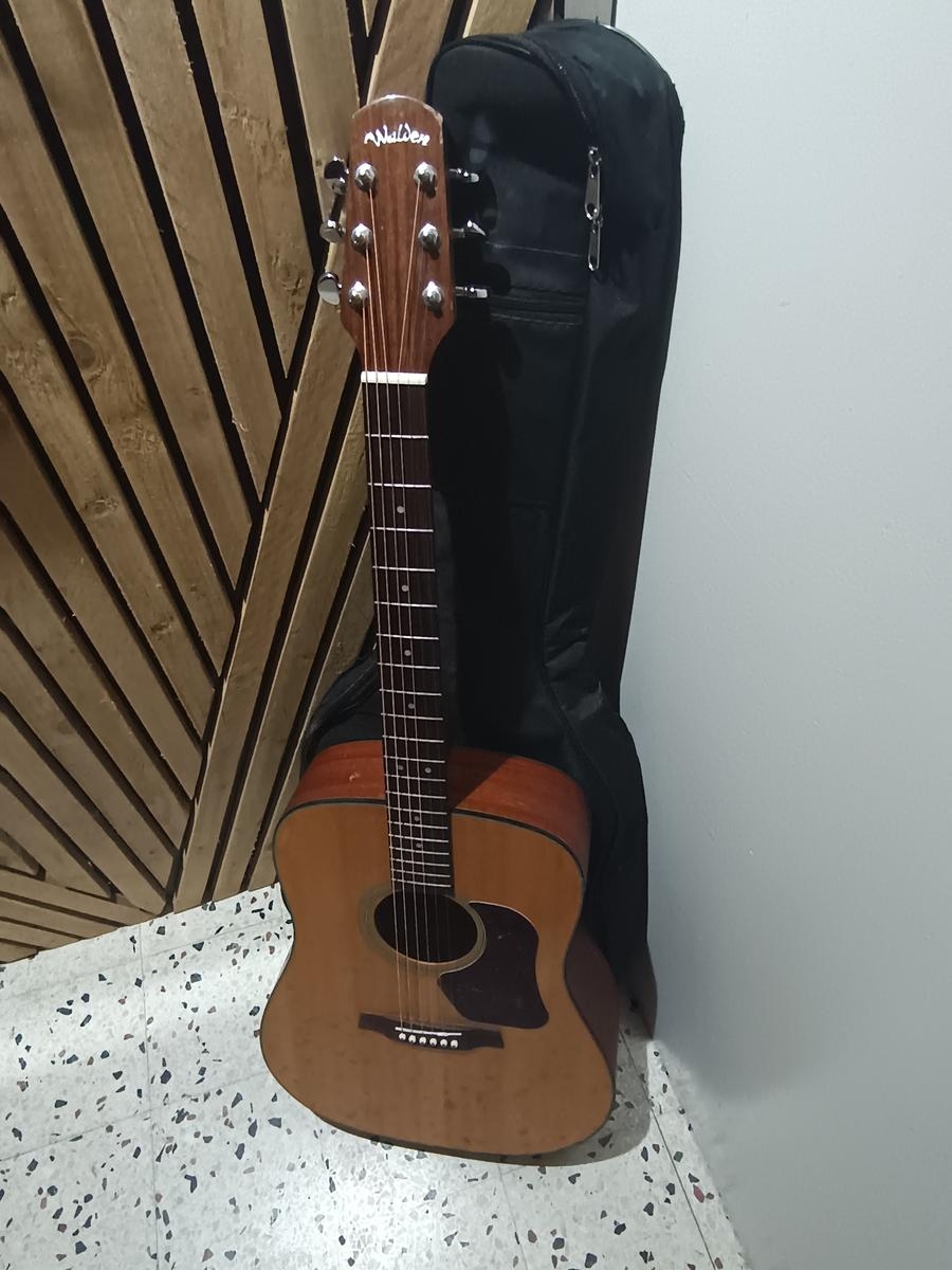 The Walden D555 is an acoustic guitar from the Natura series by manufacturer Walden. It features a solid spruce top, mahogany back and sides, and a rosewood fingerboard and bridge. This combination of woods offers a rich and balanced sound. The D555 also includes a reinforced mahogany neck with fiberglass for increased stability. Some models come with electronic components for easy amplification. Walden guitars are well-known for their excellent value for money and meticulous craftsmanship.