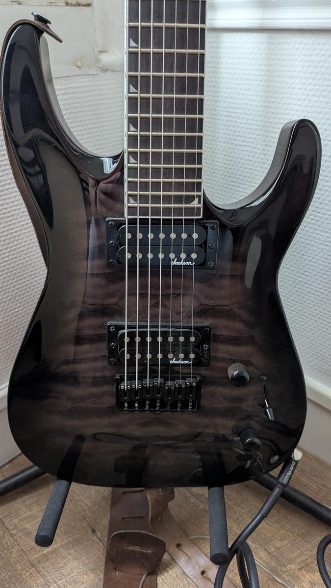 For sale: Jackson JS22-7 bought in May 2024, with Peavey Rage amp and Boss GT1 pedalboard. All items are functional, in good condition, and sold as a set. Pick up in person in Le Havre.