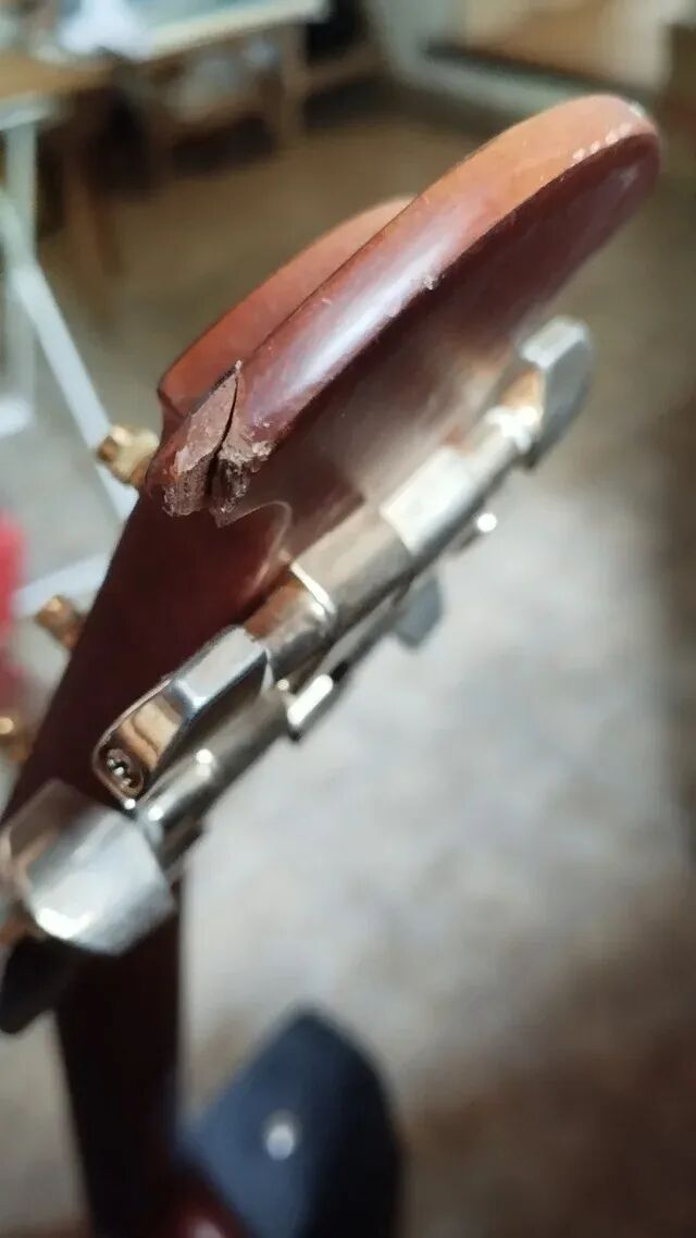 It was serviced by a luthier 6 months ago: the bridge has been slightly lowered for more comfortable playability.