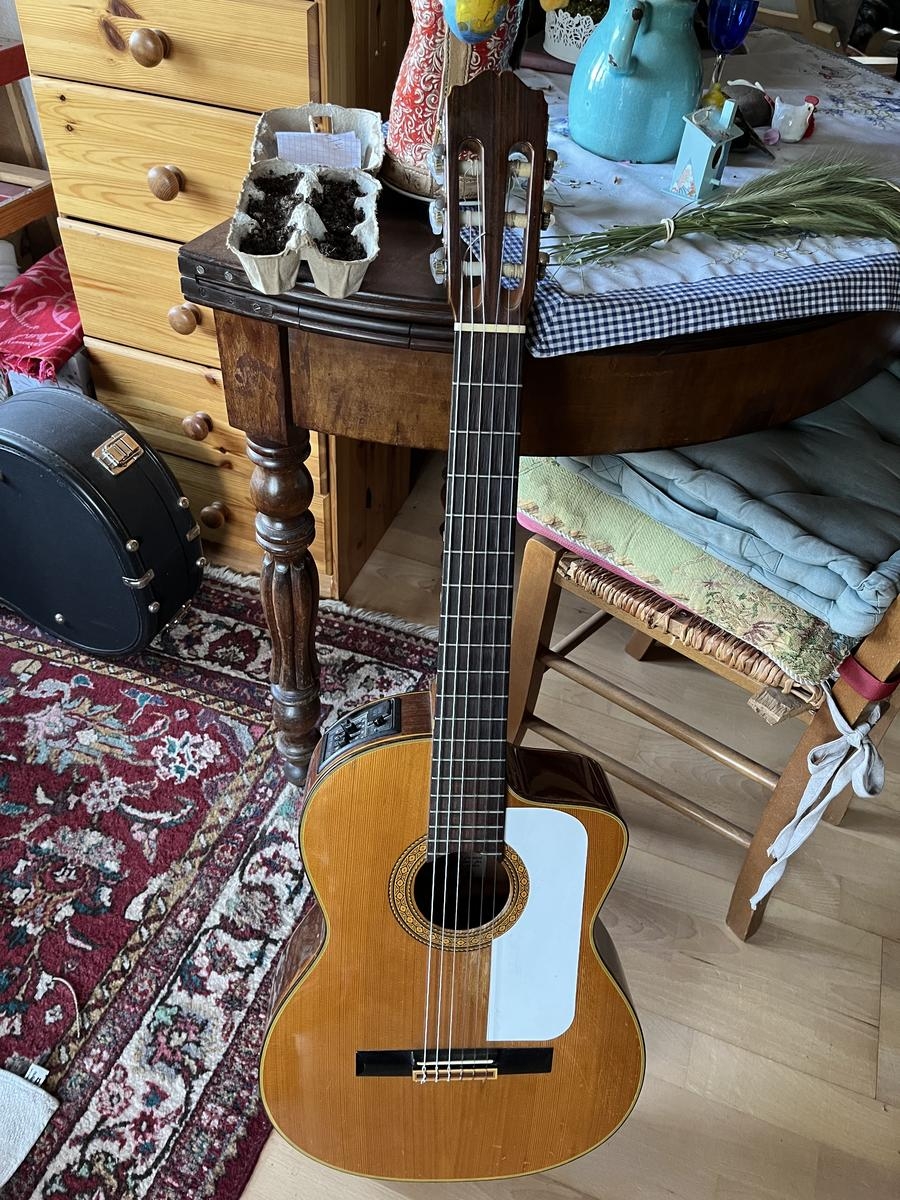 Guitar bought in San Francisco on the legendary street of Haight-Ashbury in 1990. It has an excellent electro sound. It is a nylon string guitar.