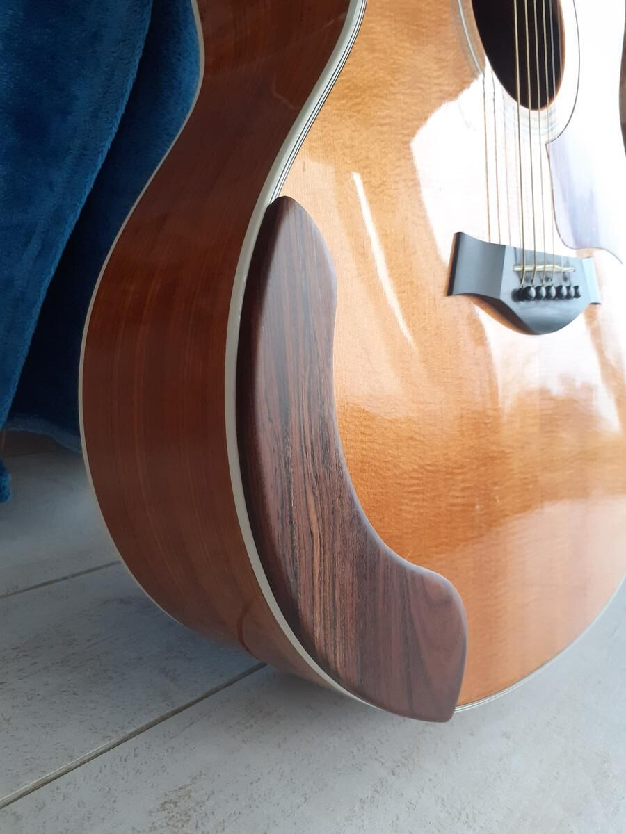 • It covers a pre-existing impact mark on the finish (guitar inspected by a luthier and then refinished)