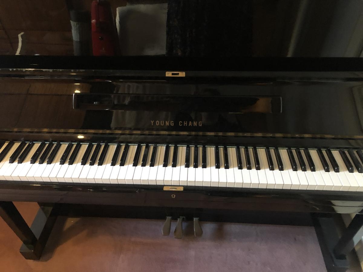 This is a semi-professional U-121 Young Chang black lacquered upright acoustic piano purchased in 1995. It was played for 5 years by a child and then not used for 25 years (which is good for the piano, but it needs to be tuned again). The piano is in excellent condition with minimal scratches and is located in Paris 11.