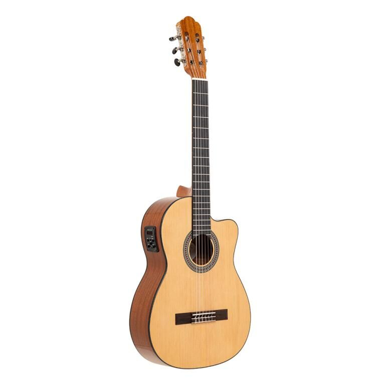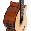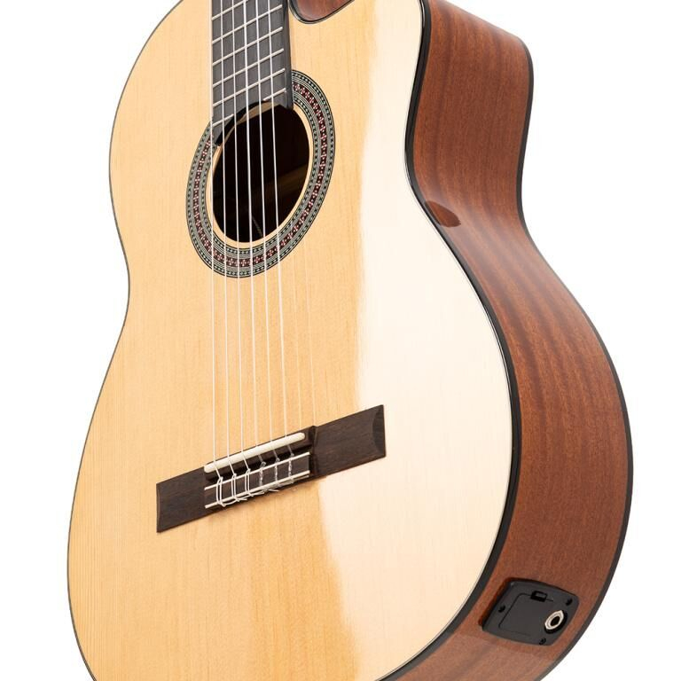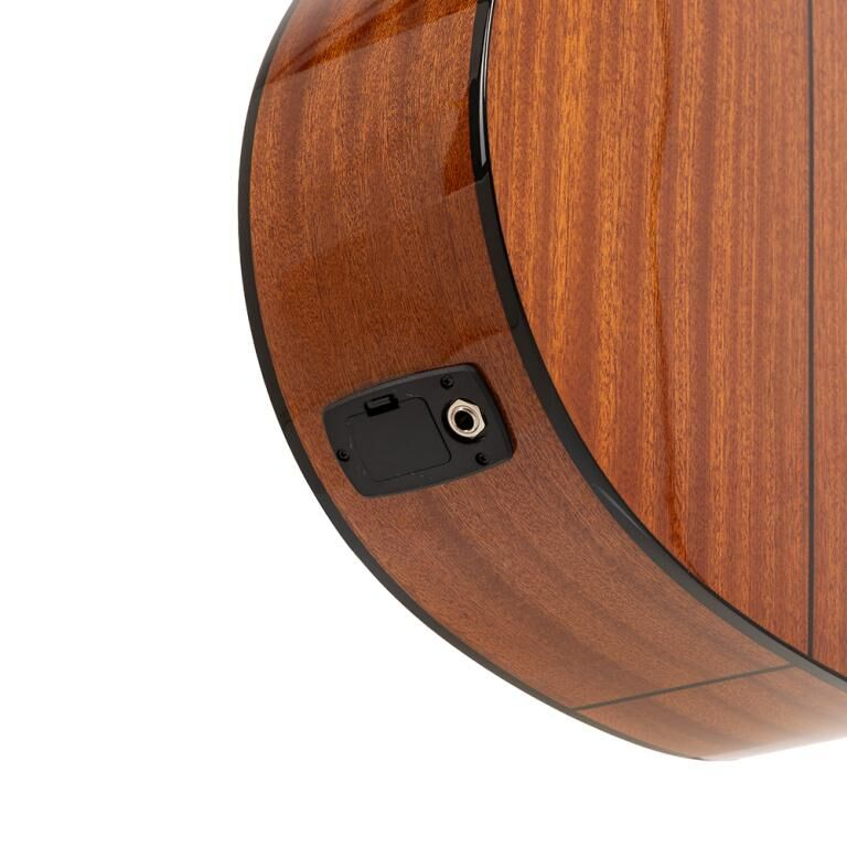 - Electronics (active): Under saddle transducer, preamp with volume control, bass/mid/treble control, chromatic tuner, phase control and low battery indicator, 6.35 mm (1/4") output jack