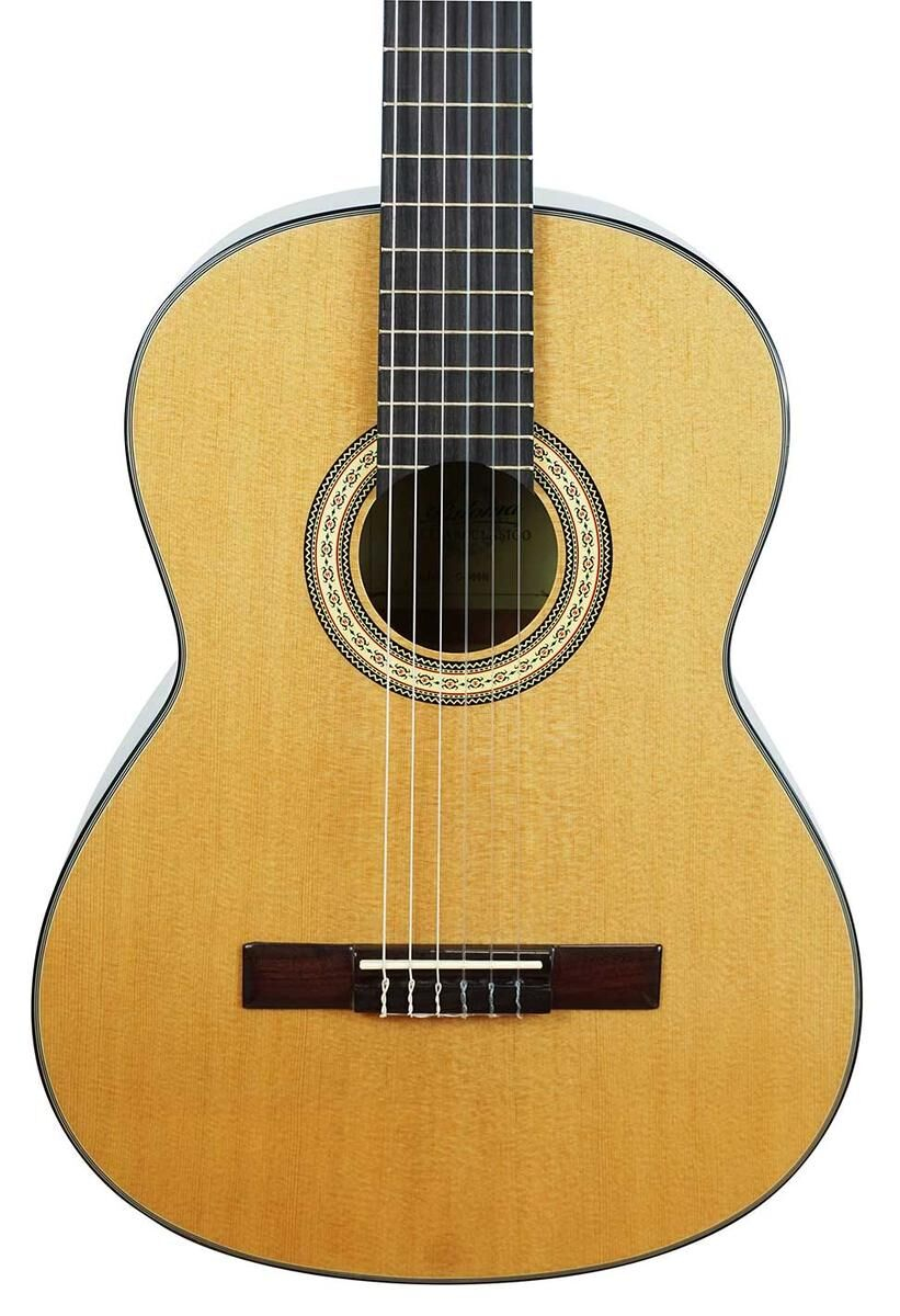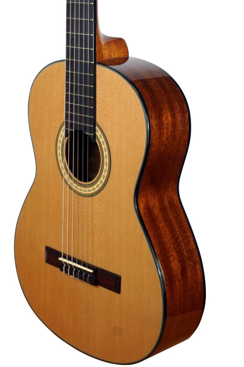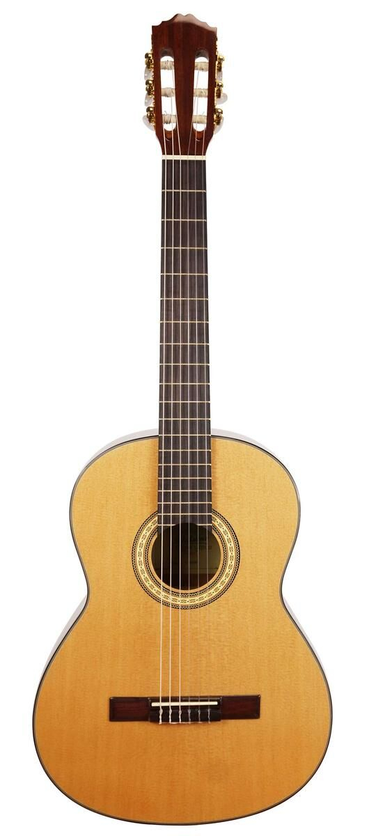 This C-966 N model stands out for the superior quality of its solid spruce top, glossy finish, and gold tuners with mother-of-pearl buttons, offering superior aesthetic and acoustic performance. Its sturdy design and high-end materials make it a reliable and durable choice, ideal for those seeking the best value for money in the range of 4/4 classical guitars. Furthermore, its elegant design with double black/white binding makes it both high-performing and aesthetically pleasing.